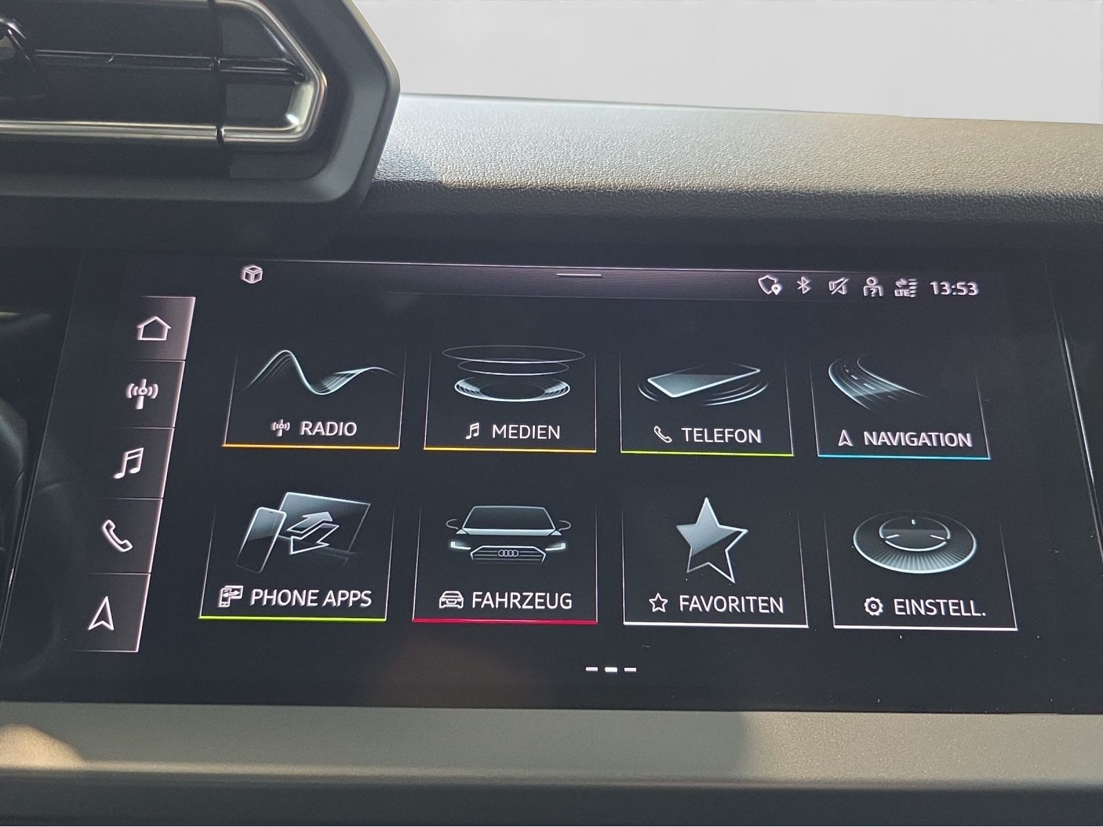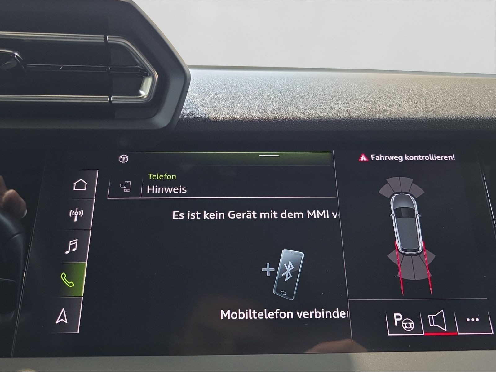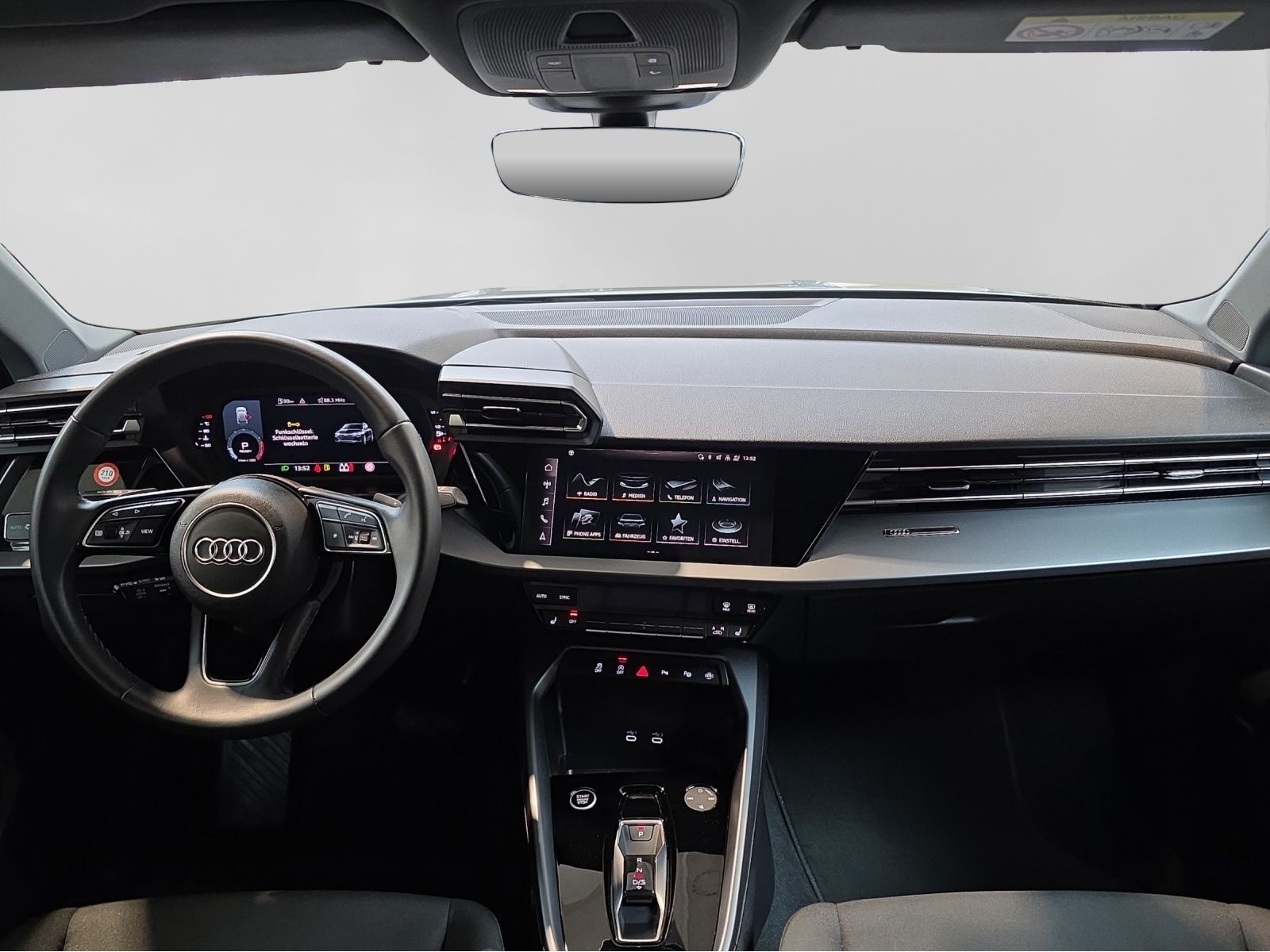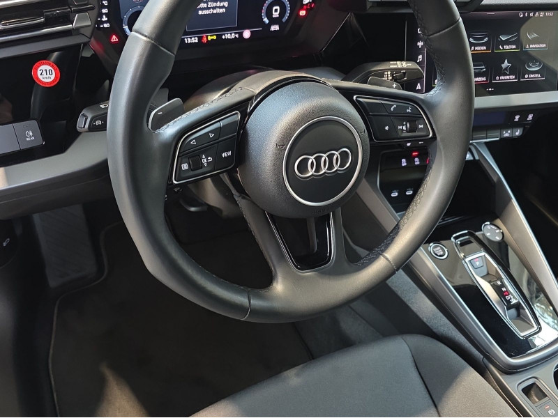 Hersteller-Anschlussgarantie 3 Jahre, max. 100.000 km; **Garantie**; Audi Connect je nach Dienst zeitlich begrenzt; danach kostenpflichtig verlängerbar; Anschlussgarantie 3 Jahre max. 100.000 km; **Getriebe / Antrieb**; Automatik; Frontantrieb; **Pakete**; Ambiente Licht Paket; Glanz Paket; Klima Paket; Klimatisierungs Paket plus; Komfort Paket II; Komfort Paket plus; **Airbags**; Fahrer-/Beifahrerairbag; Interaktionsairbag; Kopfairbag; Seitenairbag; **Sicherheit**; Ausweichassistent; Spurhalteassistent Lane Assist; Spurverlassenswarnung; Tagfahrlicht; Abbiegeassistent; Ablenkungserkennung; Antiblockiersystem ABS; Antischlupfregelung ASR; Audi connect Notruf & Service; Beifahrerairbag Deaktivierung; BRS für Fahrzeuge mit E-Antrieb (ESC und eBKV); Einparkhilfe vorn und hinten mit Parklenkassistent; Elektrisches Stabilitätsprogramm ESP; Elektronische Bremskraftverteilung EBV; i-Size Kindersitzbefestigung hinten; ISOFIX Kindersitzbefestigung; Kindersicherung elektrisch; Lichtsensor; Motor-Schleppmoment-Regelung MSR; Müdigkeitserkennung; Notbremsassistent; Notfall Assist; Notruf Service; Regensensor; Reifendruckkontrolle; Speedlimiter (LIM); top tether Kindersitzverankerung hinten; Verkehrszeichenerkennung; Wegfahrsperre; **Audio & Kommunikation**; Audi connect Navigation & Infotainment on Demand; MMI Radio plus; Audi phone box mit Wireless Charging; Audi smartphone interface; LTE-Unterstützung für Audi phone box; sound plus; 6 Lautsprecher; Audi connect Remote & Control; Digitaler Radioempfang DAB+; zwei USB-Anschlüsse mit Ladefunktion im Fond; Vorbereitung für Functions on Demand; **Komfort**; Lendenwirbelstütze Fahrer-/Beifahrersitz elektrisch 4-Wege; Sitzheizung; Komfortklimaautomatik 3-Zonen; Automatisch abblendender Innenspiegel rahmenlos; Fensterheber elektrisch; Komfortschlüssel / Keyless Entry; Mittelarmlehne vorn; Servotronic; Geschwindigkeits-Regelanlage - Geschwindigkeitsregelanlage (GRA); Verglasung hinten abgedunkelt; Zentralverriegelung mit Fernbedienung; **Interieur**; Sitzbezüge in Stoff; Audi virtual cockpit; Multifunktionslederlenkrad plus 3-Speichen mit Schaltwippen; Rücksitzlehne klappbar; **Exterieur**; Anhängerkupplung; Außenspiegel elektrisch verstell-/anklappbar beheizt automatisch abblendend; Beifahrerspiegelabsenkung; Dachreling Aluminium; Leichtmetallfelgen 17 Zoll; Start-Stop System; **Sonstiges**; Metallic-Lackierung; * Assistenzpaket Schutz- und Warnsysteme