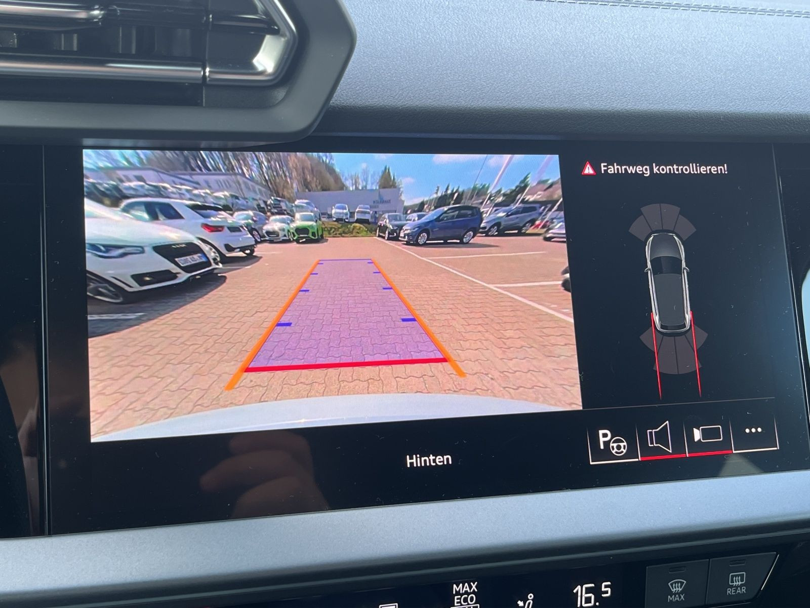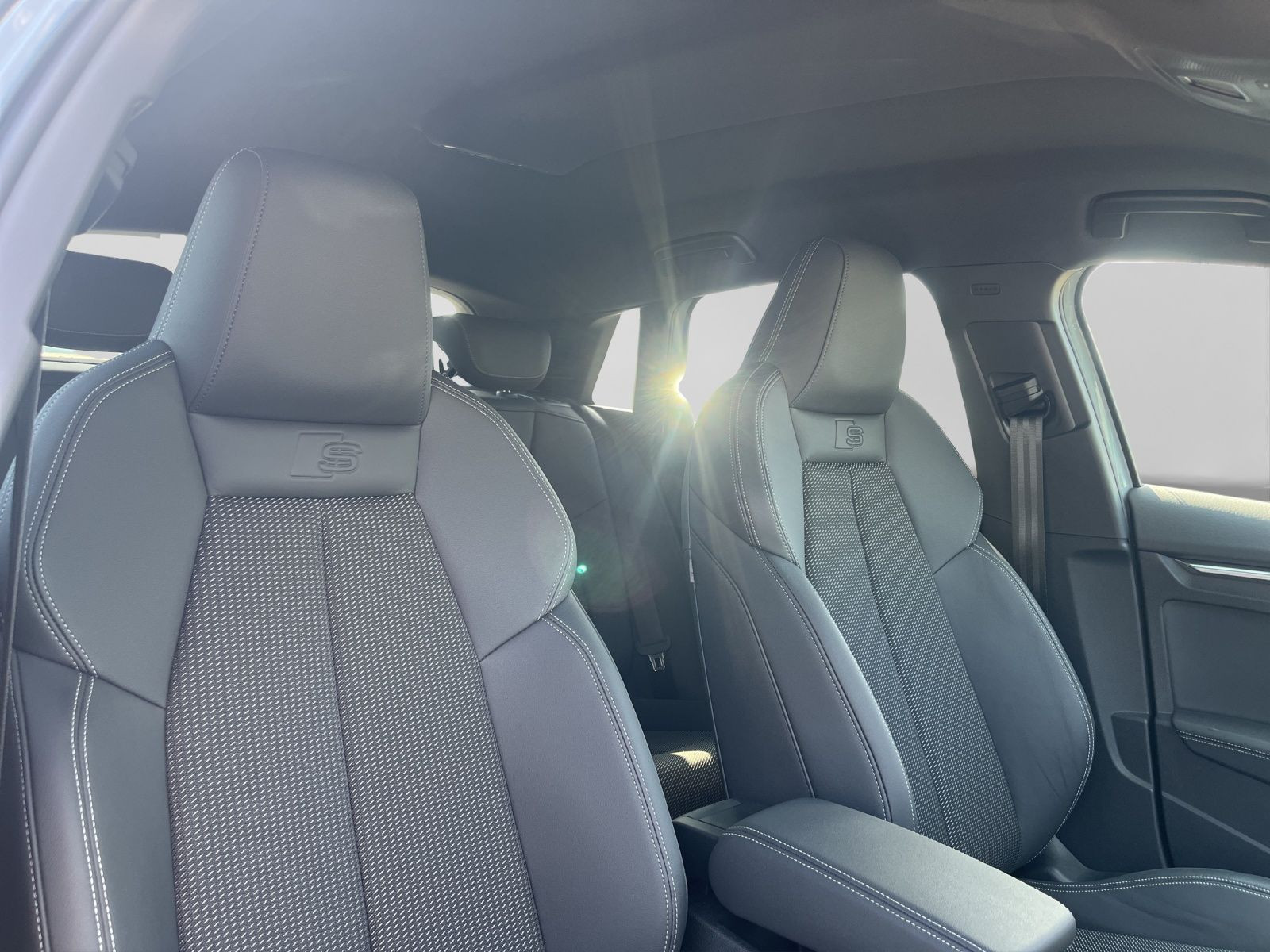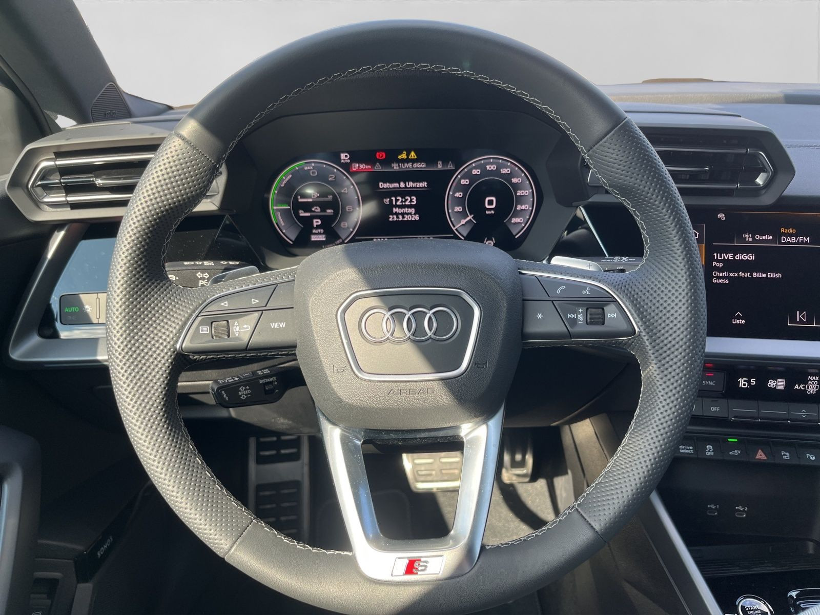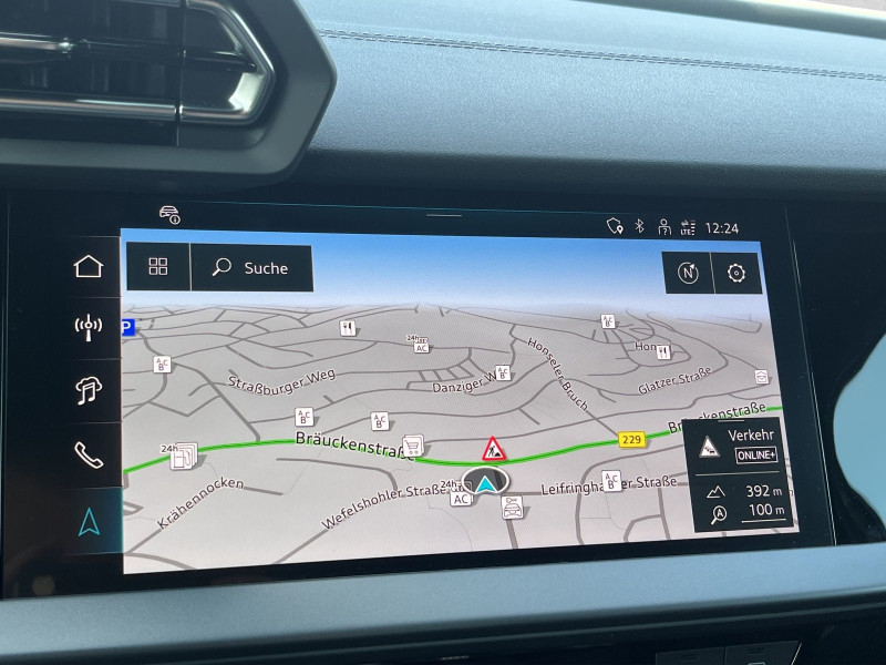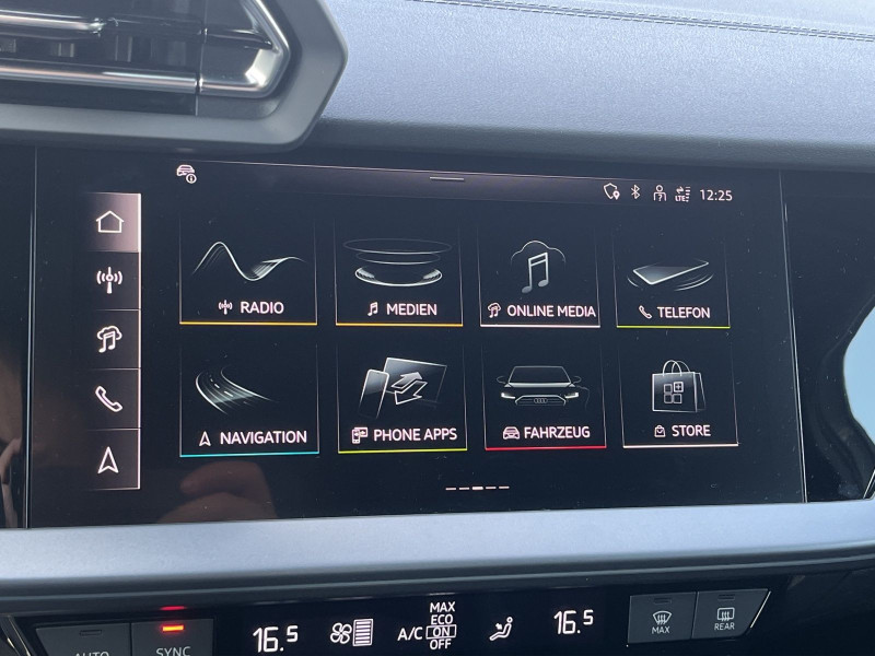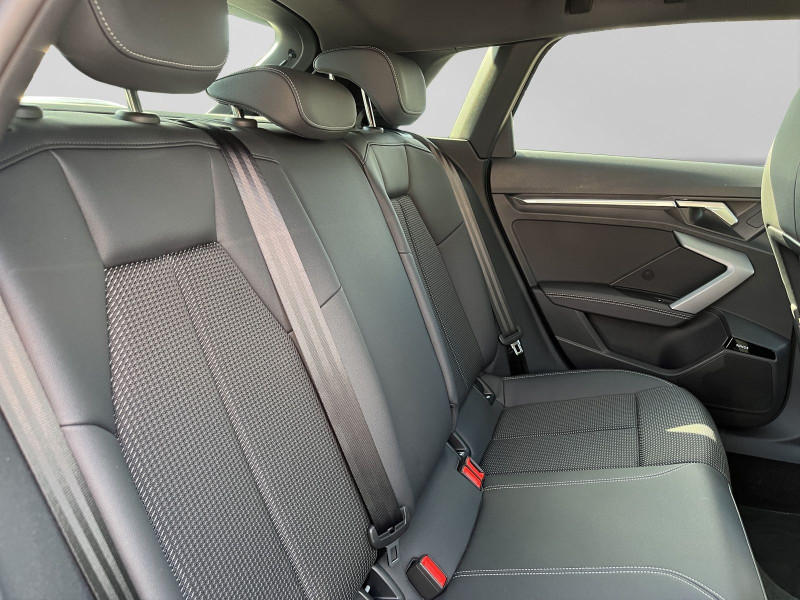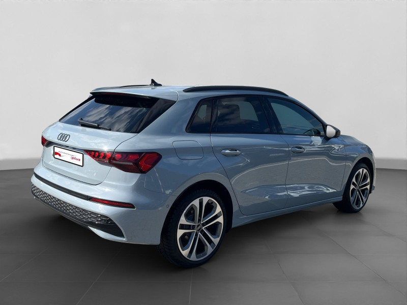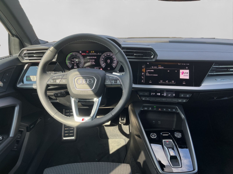 Hersteller-Anschlussgarantie 3 Jahre, max. 100.000 km; **Ausstattungsvariante**; Advanced; **Garantie**; Audi Connect je nach Dienst zeitlich begrenzt; danach kostenpflichtig verlängerbar; Anschlussgarantie 3 Jahre max. 100.000 km; **Getriebe / Antrieb**; Automatik; Frontantrieb; **Pakete**; Ablage-/Gepäckraum Paket; Ambiente Licht Paket plus; Assistenz Paket Parken; Assistenz Paket Schutz- und Warnsysteme plus; Business Paket; Klimatisierungs Paket plus; Komfort Paket II; Komfort Paket plus; Navigations Paket; Optik Paket Schwarz plus; **Airbags**; Fahrer-/Beifahrerairbag; Interaktionsairbag; Kopfairbag; Seitenairbag; **Sicherheit**; LED Scheinwerfer; Adaptiver Fahrassistent (AFA); Ausweichassistent; Halteassistent; Querverkehrsassistent; Spurverlassenswarnung; Spurwechselassistent Audi side assist; Tagfahrlicht; Abbiegeassistent; Ablenkungserkennung; Akustisches Fahrzeug-Warnsystem; Antiblockiersystem ABS; Antischlupfregelung ASR; Audi connect Notruf & Service; Ausstiegswarnung; Beifahrerairbag Deaktivierung; BRS für Fahrzeuge mit E-Antrieb (ESC und eBKV); dynamisches Blinklicht; Einparkhilfe vorn und hinten mit Parklenkassistent; Elektrisches Stabilitätsprogramm ESP; Elektronische Bremskraftverteilung EBV; Fernlichtassistent Light Assist; i-Size Kindersitzbefestigung hinten; ISOFIX Kindersitzbefestigung; Kindersicherung elektrisch; Lichtsensor; Motor-Schleppmoment-Regelung MSR; Müdigkeitserkennung; Notbremsassistent; Notfall Assist; Notruf Service; Proaktiver Insassenschutz Front; Seite und Heck; Regensensor; Reifendruckkontrolle; Rückfahrkamera; Speedlimiter (LIM); top tether Kindersitzverankerung hinten; Verkehrszeichenerkennung; Wegfahrsperre; **Audio & Kommunikation**; Audi connect Navigation & Infotainment plus; MMI Navigation plus mit MMI touch; Audi phone box mit Wireless Charging; Audi smartphone interface; LTE-Unterstützung für Audi phone box; SONOS Premium Soundsystem; Audi connect Remote & Control; Digitaler Radioempfang DAB+; MMI Experience pro; zwei USB-Anschlüsse mit Ladefunktion im Fond; Vorbereitung für Functions on Demand; **Komfort**; Head-Up Display; Lendenwirbelstütze Fahrer-/Beifahrersitz elektrisch 4-Wege; Sitzheizung; Standlüftung programmierbar; Komfortklimaautomatik 3-Zonen; Standklimatisierung; Audi drive select; Automatisch abblendender Innenspiegel rahmenlos; Automatische Distanzregelung ACC; Fensterheber elektrisch; Komfortschlüssel / Keyless Entry; Mittelarmlehne vorn; Servotronic; Verglasung hinten abgedunkelt; **Interieur**; Sitzbezüge in Stoff / Kunstleder; Audi virtual cockpit plus; Dachhimmel in schwarz; Sportsitze; Aluminiumoptik im Interieur; Einstiegleisten mit beleuchteter Aluminiumeinlage; Multifunktionslederlenkrad plus 3-Speichen mit Schaltwippen; Rücksitzlehne klappbar; **Exterieur**; Anhängerkupplung; Außenspiegel elektrisch verstell-/anklappbar beheizt automatisch abblendend; Außenspiegelgehäuse in Schwarz hochglänzend; Beifahrerspiegelabsenkung; Dachreling; Dachspoiler; LED Rückleuchten; Leichtmetallfelgen 18 Zoll Audi Sport 10-Speichen-Stern-Design; Start-Stop System; **Sonstiges**; e-tron Ladesystem kompakt; Haushaltsstecker Typ E/F für das e-tron Ladesystem; ECO-Funktion; Garagentoröffner; Metallic-Lackierung; * Assistenz-Paket Fahren