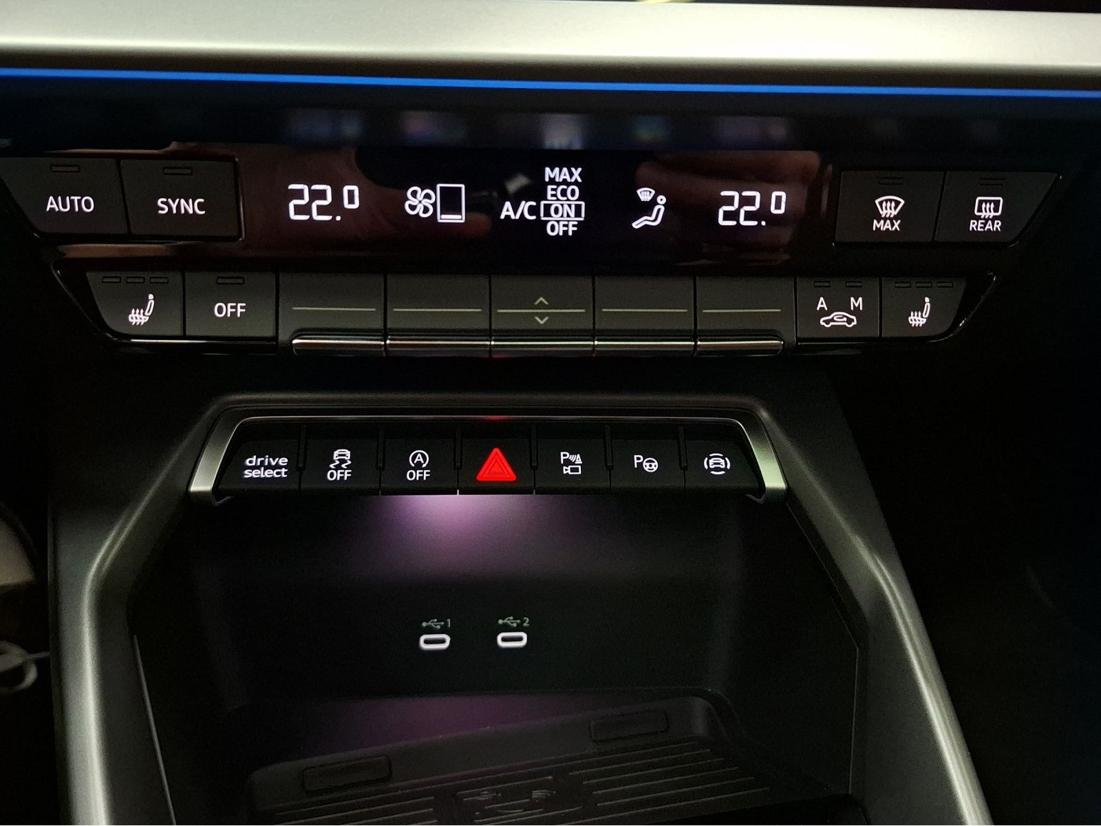 - zwei USB-Anschlüsse mit Ladefunktion im Fond