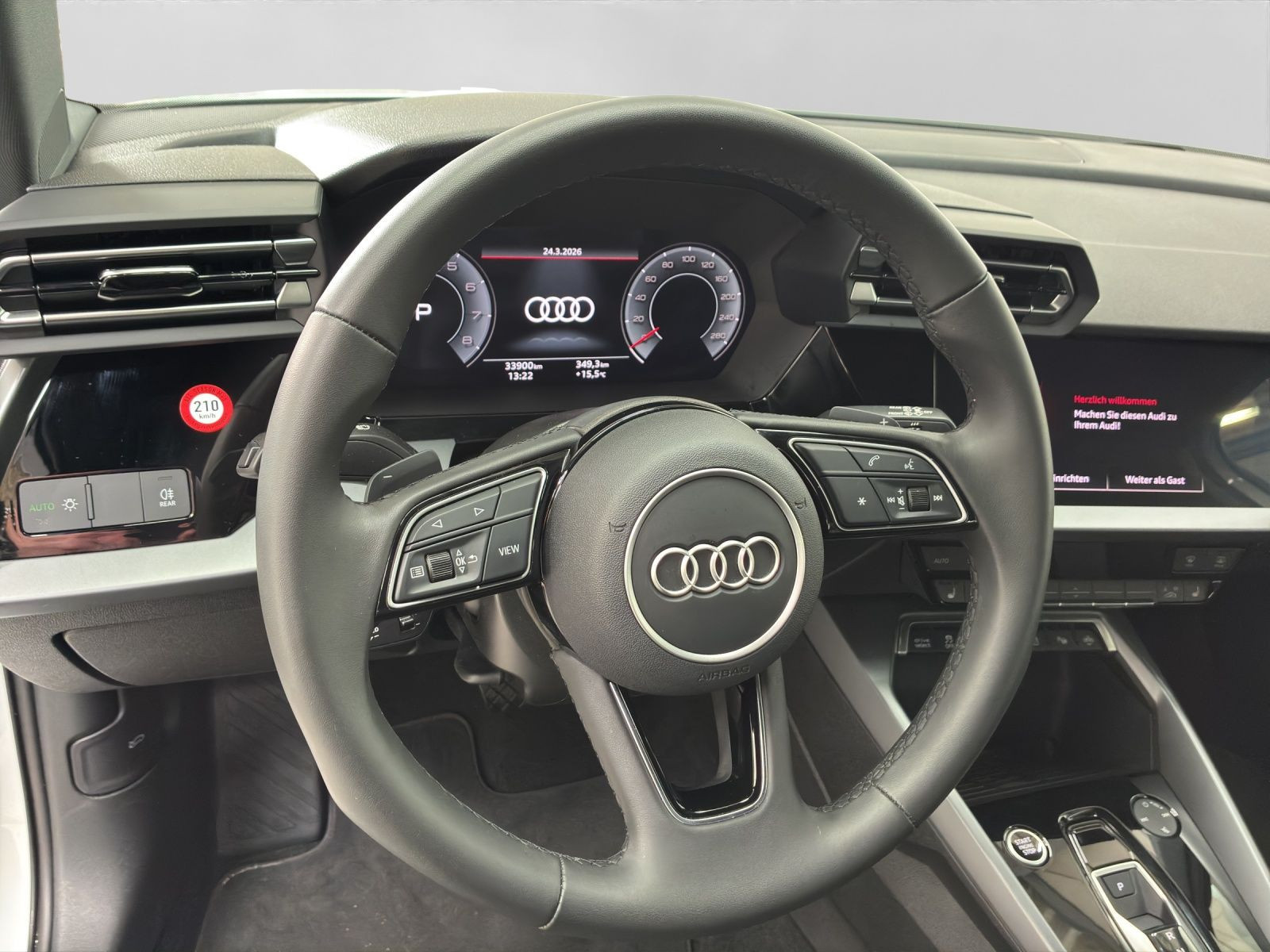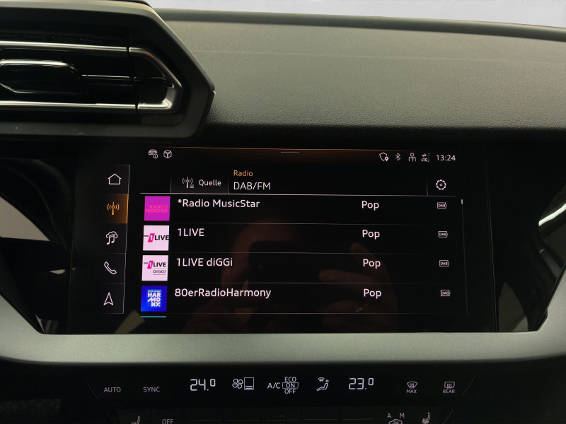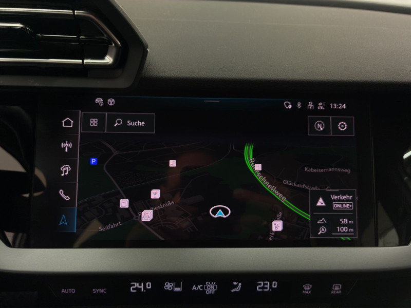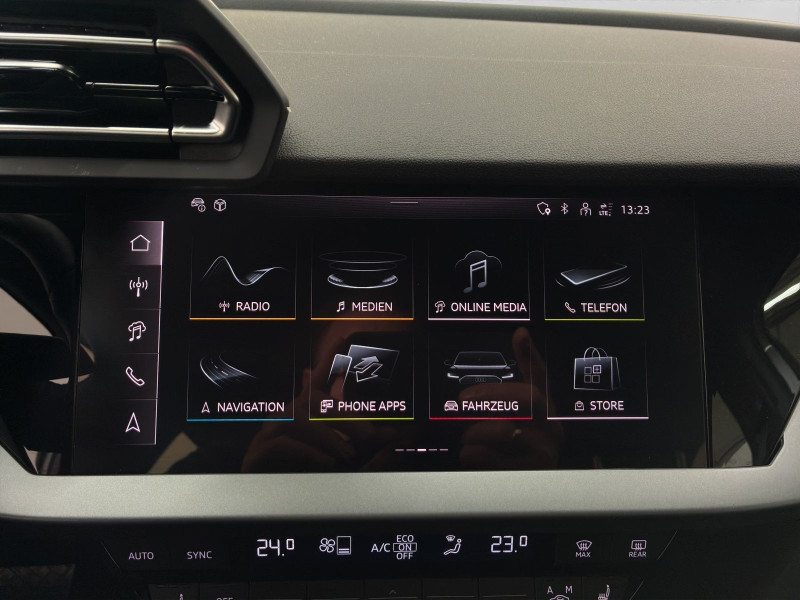 Hersteller-Anschlussgarantie 3 Jahre, max. 100.000 km; **Ausstattungsvariante**; Advanced; **Garantie**; Audi Connect je nach Dienst zeitlich begrenzt; danach kostenpflichtig verlängerbar; Anschlussgarantie 3 Jahre max. 100.000 km; **Getriebe / Antrieb**; Automatik; Frontantrieb; **Pakete**; Ambiente Licht Paket; Assistenz Paket Fahren und Parken plus; Business Paket; Klima Paket; Klimatisierungs Paket plus; Komfort Paket; **Airbags**; Fahrer-/Beifahrerairbag; Interaktionsairbag; Kopfairbag vorn und hinten; Seitenairbag vorn und hinten; **Sicherheit**; Ausweichassistent; Spurhalteassistent Lane Assist; Spurverlassenswarnung; Tagfahrlicht; Abbiegeassistent; Ablenkungserkennung; Antiblockiersystem ABS; Antischlupfregelung ASR; Audi connect Notruf & Service; Beifahrerairbag Deaktivierung; BRS für Fahrzeuge mit E-Antrieb (ESC und eBKV); Einparkhilfe vorn und hinten mit Parklenkassistent; Elektrisches Stabilitätsprogramm ESP; Elektronische Bremskraftverteilung EBV; Fernlichtassistent Light Assist; i-Size Kindersitzbefestigung hinten; ISOFIX Kindersitzbefestigung; Kindersicherung elektrisch; Lichtsensor; Motor-Schleppmoment-Regelung MSR; Müdigkeitserkennung; Notbremsassistent; Notfall Assist; Notruf Service; Regensensor; Reifendruckkontrolle; Rückfahrkamera; Speedlimiter (LIM); top tether Kindersitzverankerung hinten; Verkehrszeichenerkennung; Wegfahrsperre; **Audio & Kommunikation**; Audi connect Navigation & Infotainment plus; MMI Navigation plus mit MMI touch; MMI Radio plus; Audi phone box mit Wireless Charging; Audi smartphone interface; Audi sound system; LTE-Unterstützung für Audi phone box; Audi connect Remote & Control; Digitaler Radioempfang DAB+; MMI Experience plus; zwei USB-Anschlüsse mit Ladefunktion im Fond; Vorbereitung für Functions on Demand; **Komfort**; Fahrersitz elektrisch; Lendenwirbelstütze Fahrer-/Beifahrersitz elektrisch 4-Wege; Sitzheizung; Komfortklimaautomatik 3-Zonen; Audi drive select; Automatische Distanzregelung ACC; Fensterheber elektrisch; Komfortschlüssel / Keyless Entry; Mittelarmlehne vorn; Servotronic; Zentralverriegelung mit Fernbedienung; **Interieur**; Sitzbezüge in Stoff; Audi virtual cockpit plus; Aluminiumoptik im Interieur; Multifunktionslederlenkrad plus 3-Speichen mit Schaltwippen; Rücksitzlehne klappbar; **Exterieur**; Vorbereitung für Anhängerkupplung; Außenspiegel elektrisch verstell-/beheizbar; Dachspoiler; Leichtmetallfelgen 17 Zoll 5-Arm-Design; Start-Stop System; **Sonstiges**; ECO-Funktion; Metallic-Lackierung; * MMI experience plus; * Assistenzpaket Schutz- und Warnsysteme; * Infotainmentpaket Connectivity