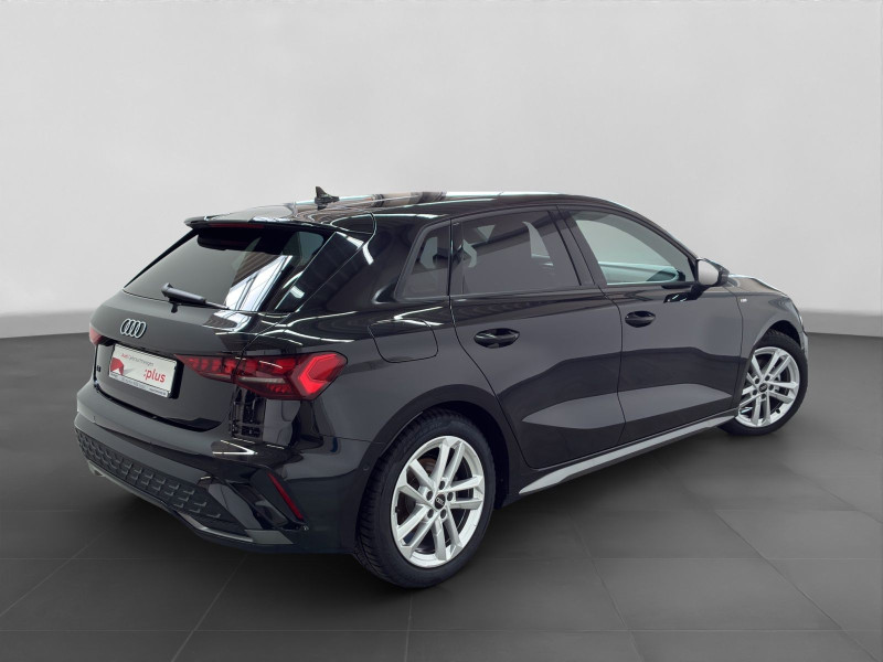 Hersteller-Anschlussgarantie 3 Jahre, max. 100.000 km; **Garantie**; Audi Connect je nach Dienst zeitlich begrenzt; danach kostenpflichtig verlängerbar; Anschlussgarantie 3 Jahre max. 100.000 km; **Getriebe / Antrieb**; Automatik; Frontantrieb; **Pakete**; Ambiente Licht Paket; Assistenz Paket Fahren und Parken plus; Business Paket plus; Klimatisierungs Paket plus; Komfort Paket II; Komfort Paket plus; S line Sport Paket; **Airbags**; Fahrer-/Beifahrerairbag; Interaktionsairbag; Kopfairbag vorn und hinten; Seitenairbag vorn und hinten; **Sicherheit**; LED Scheinwerfer; Ausweichassistent; LED Tagfahrlicht; Spurverlassenswarnung; Abbiegeassistent; Ablenkungserkennung; Antiblockiersystem ABS; Antischlupfregelung ASR; Audi connect Notruf & Service; Beifahrerairbag Deaktivierung; BRS für Fahrzeuge ohne E-Antrieb (ESC und eBKV); dynamisches Blinklicht; Einparkhilfe vorn und hinten mit Parklenkassistent; Elektrisches Stabilitätsprogramm ESP; Elektronische Bremskraftverteilung EBV; Fernlichtassistent Light Assist; i-Size Kindersitzbefestigung hinten; ISOFIX Kindersitzbefestigung; Kindersicherung elektrisch; Lichtsensor; Motor-Schleppmoment-Regelung MSR; Müdigkeitserkennung; Notbremsassistent; Notfall Assist; Notruf Service; Regensensor; Reifendruckkontrolle; Rückfahrkamera; Speedlimiter (LIM); top tether Kindersitzverankerung hinten; Verkehrszeichenerkennung; Wegfahrsperre; **Audio & Kommunikation**; Audi connect Navigation & Infotainment plus; MMI Navigation plus mit MMI touch; MMI Radio plus; Audi phone box mit Wireless Charging; Audi smartphone interface; Audi sound system; LTE-Unterstützung für Audi phone box; Audi connect Remote & Control; Digitaler Radioempfang DAB+; MMI Experience plus; zwei USB-Anschlüsse mit Ladefunktion im Fond; Vorbereitung für Functions on Demand; **Komfort**; Fahrer-/Beifahrersitz elektrisch; Lendenwirbelstütze Fahrer-/Beifahrersitz elektrisch 4-Wege; Sitzheizung; Gepäckraumklappe elektrisch öffnend und schließend; Komfortklimaautomatik 3-Zonen; Automatisch abblendender Innenspiegel rahmenlos; Automatische Distanzregelung ACC; Elektrische Luftzusatzheizung; Fensterheber elektrisch; Komfortschlüssel / Keyless Entry; Mittelarmlehne vorn; Servotronic; Verglasung hinten abgedunkelt; Zentralverriegelung mit Fernbedienung; **Interieur**; Sitzbezüge in Stoff; Audi virtual cockpit plus; Sportsitze; Aluminiumoptik im Interieur; Einstiegsleisten Aluminium; Multifunktionslederlenkrad plus 3-Speichen mit Schaltwippen; Rücksitzlehne klappbar; **Exterieur**; Sportfahrwerk; Vorbereitung für Anhängerkupplung; Außenspiegel elektrisch verstell-/anklappbar beheizt automatisch abblendend; Beifahrerspiegelabsenkung; LED Rückleuchten; Leichtmetallfelgen 17 Zoll 5-W-Speichen-Design; Start-Stop System; **Sonstiges**; Dieselpartikelfilter DPF; Metallic-Lackierung