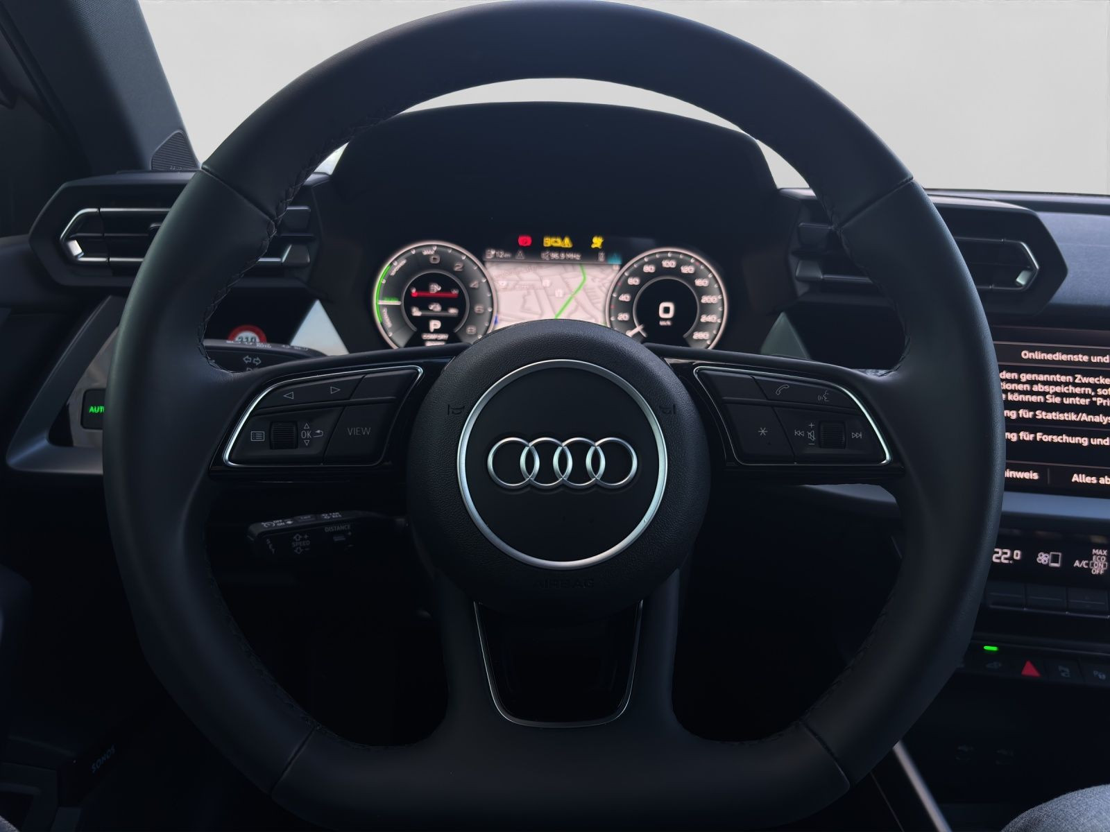 Highlights: Audi Connect je nach Dienst zeitlich begrenzt, danach kostenpflichtig verlängerbar - Hersteller-Anschlussgarantie 3 Jahre, max. 100.000 km Hersteller-Anschlussgarantie 3 Jahre, max. 100.000 km Ausstattungsvariante Advanced Garantie Audi Connect je nach Dienst zeitlich begrenzt - danach kostenpflichtig verlängerbar - Anschlussgarantie 3 Jahre max. 100.000 km Getriebe / Antrieb Automatik - Frontantrieb Pakete Ablage-/Gepäckraum Paket - Ambiente Licht Paket - Assistenz Paket Fahren und Parken plus - Business Paket - Klimatisierungs Paket plus - Komfort Paket plus - Navigations Paket - Optik Paket Schwarz plus Airbags Fahrer-/Beifahrerairbag - Interaktionsairbag - Kopfairbag - Seitenairbag Sicherheit LED Scheinwerfer - Ausweichassistent - Halteassistent - LED Tagfahrlicht - Abbiegeassistent - Ablenkungserkennung - Akustisches Fahrzeug-Warnsystem - Antiblockiersystem ABS - Antischlupfregelung ASR - Audi connect Notruf & Service - Beifahrerairbag Deaktivierung - dynamisches Blinklicht - Einparkhilfe vorn und hinten mit Parklenkassistent - Elektrisches Stabilitätsprogramm ESP - Elektronische Bremskraftverteilung EBV - Fernlichtassistent Light Assist - i-Size Kindersitzbefestigung hinten - ISOFIX Kindersitzbefestigung - Kindersicherung elektrisch - Lichtsensor - Motor-Schleppmoment-Regelung MSR - Müdigkeitserkennung - Notbremsassistent - Notruf Service - Regensensor - Reifendruckkontrolle - Rückfahrkamera - top tether Kindersitzverankerung hinten - Verkehrszeichenerkennung - Wegfahrsperre Audio & Kommunikation Audi connect Navigation & Infotainment plus - MMI Navigation plus mit MMI touch - MMI Radio plus - Navigationssystem - Audi phone box mit Wireless Charging - Audi smartphone interface - LTE-Unterstützung für Audi phone box - SONOS Premium Soundsystem - Audi connect Remote & Control - Digitaler Radioempfang DAB+ - MMI experience pro - zwei USB-Anschlüsse mit Ladefunktion im Fond - Vorbereitung für Functions on Demand Komfort Head-Up Display - Lendenwirbelstütze Fahrer-/Beifahrersitz elektrisch 4-Wege - Sitzheizung - Standheizung/-lüftung programmierbar - Gepäckraumklappe elektrisch öffnend und schließend - Komfortklimaautomatik 3-Zonen - Standklimatisierung - Audi drive select - Automatisch abblendender Innenspiegel rahmenlos - Automatische Distanzregelung ACC - Fensterheber elektrisch - Komfortschlüssel / Keyless Entry - Mittelarmlehne vorn - Servotronic - Verglasung hinten abgedunkelt Interieur Sitzbezüge in Stoff - Audi virtual cockpit plus - Sportsitze - Einstiegsleisten Aluminium - Multifunktionssportkonturlederlenkrad plus 3-Speichen unten abgeflacht mit Schaltwippen - Rücksitzlehne klappbar Exterieur Anhängerkupplung - Außenspiegel elektrisch verstell-/anklappbar beheizt automatisch abblendend - Außenspiegelgehäuse in Schwarz hochglänzend - Beifahrerspiegelabsenkung - Dachreling - Dachspoiler - LED Rückleuchten - Leichtmetallfelgen 17 Zoll 5-Parallelspeichen-Design - Start-Stop System Sonstiges e-tron Ladesystem kompakt - Haushaltsstecker Typ E/F für das e-tron Ladesystem - ECO-Funktion - Metallic-Lackierung