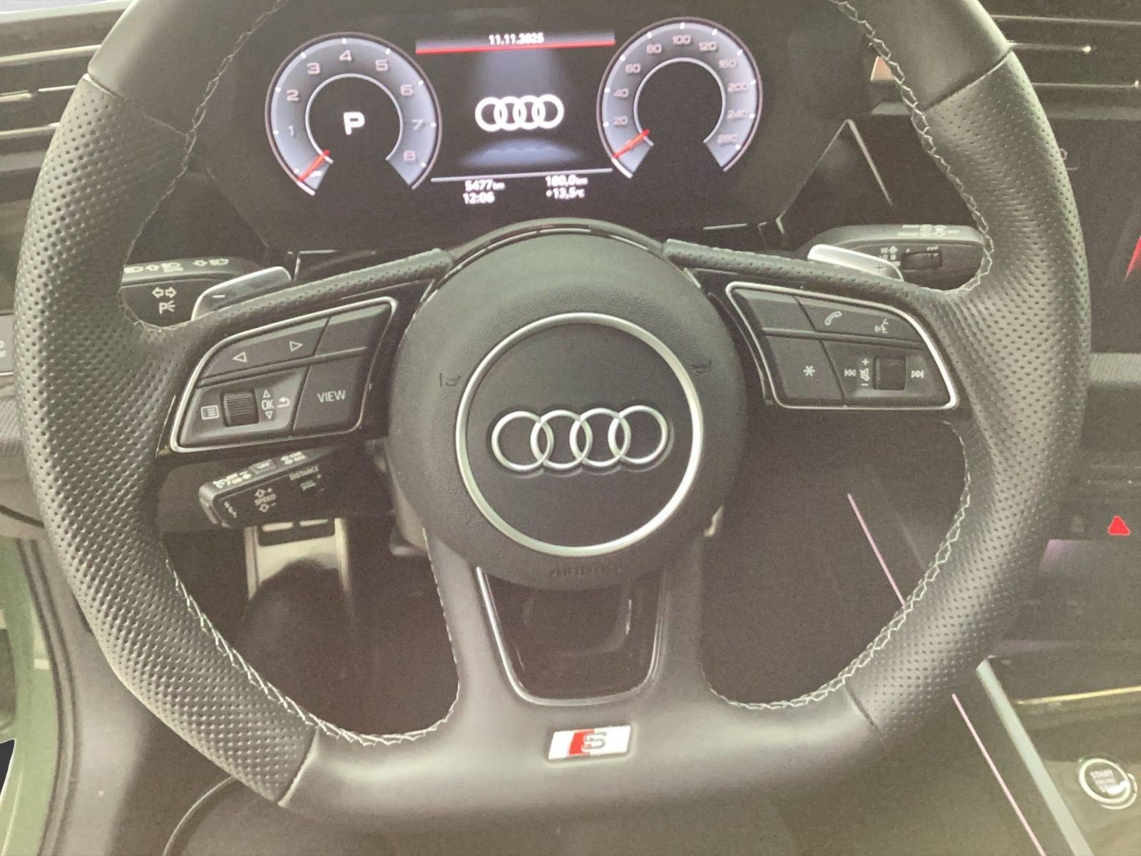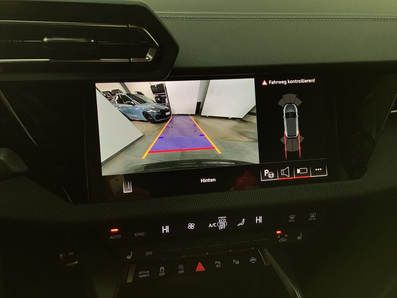 Hersteller-Anschlussgarantie 3 Jahre, max. 100.000 km; **Ausstattungsvariante**; Advanced; **Garantie**; Audi Connect je nach Dienst zeitlich begrenzt; danach kostenpflichtig verlängerbar; Anschlussgarantie 3 Jahre max. 100.000 km; **Getriebe / Antrieb**; Automatik; Frontantrieb; **Pakete**; Ambiente Licht Paket pro; Assistenz Paket Fahren und Parken plus; Assistenz Paket Schutz- und Warnsysteme plus; Business Paket; Klimatisierungs Paket plus; Komfort Paket II; Komfort Paket plus; Navigations Paket; **Airbags**; Fahrer-/Beifahrerairbag; Interaktionsairbag; Kopfairbag; Seitenairbag; **Sicherheit**; LED Scheinwerfer; Ausweichassistent; Halteassistent; Spurhalteassistent Lane Assist; Spurverlassenswarnung; Tagfahrlicht; Abbiegeassistent; Ablenkungserkennung; Antiblockiersystem ABS; Antischlupfregelung ASR; Audi connect Notruf & Service; Beifahrerairbag Deaktivierung; BRS für Fahrzeuge mit E-Antrieb (ESC und eBKV); dynamisches Blinklicht; Einparkhilfe vorn und hinten mit Parklenkassistent; Elektrisches Stabilitätsprogramm ESP; Elektronische Bremskraftverteilung EBV; Fernlichtassistent Light Assist; i-Size Kindersitzbefestigung hinten; ISOFIX Kindersitzbefestigung; ISOFIX Kindersitzbefestigung vorn und hinten; Kindersicherung elektrisch; Lichtsensor; Motor-Schleppmoment-Regelung MSR; Müdigkeitserkennung; Notbremsassistent; Notfall Assist; Notruf Service; Regensensor; Reifendruckkontrolle; Rückfahrkamera; Speedlimiter (LIM); top tether Kindersitzverankerung hinten; Verkehrszeichenerkennung; Wegfahrsperre; **Audio & Kommunikation**; Audi connect Navigation & Infotainment plus; MMI Navigation plus mit MMI touch; MMI Radio plus; Audi phone box mit Wireless Charging; Audi smartphone interface; LTE-Unterstützung für Audi phone box; SONOS Premium Soundsystem; Audi connect Remote & Control; Digitaler Radioempfang DAB+; MMI Experience pro; zwei USB-Anschlüsse mit Ladefunktion im Fond; Vorbereitung für Functions on Demand; **Komfort**; Head-Up Display; Lendenwirbelstütze Fahrer-/Beifahrersitz elektrisch 4-Wege; Sitzheizung; Gepäckraumklappe elektrisch öffnend und schließend; Komfortklimaautomatik 3-Zonen; Audi drive select; Automatisch abblendender Innenspiegel rahmenlos; Automatische Distanzregelung ACC; Fensterheber elektrisch; Komfortschlüssel / Keyless Entry; Mittelarmlehne vorn; Servotronic; Verglasung hinten abgedunkelt; Zentralverriegelung mit Fernbedienung; **Interieur**; Sitzbezüge in Stoff; Audi virtual cockpit plus; Dachhimmel in schwarz; Sportsitze; Aluminiumoptik im Interieur; Einstiegleisten mit beleuchteter Aluminiumeinlage; Einstiegsleisten Aluminium beleuchtet; Multifunktionssportkonturalcantaralenkrad plus 3-Speichen unten abgeflacht mit Schaltwippen; Multifunktionssportlederlenkrad 3-Speichen unten abgeflacht mit Schaltwippen; Pedale in Edelstahl; Rücksitzlehne klappbar; **Exterieur**; Anhängerkupplung; Sportfahrwerk; Außenspiegel elektrisch verstell-/anklappbar beheizt automatisch abblendend; Beifahrerspiegelabsenkung; Dachreling; Dachspoiler; LED Rückleuchten; Leichtmetallfelgen 18 Zoll Audi Sport 5-Y-Doppelspeichen-Design; Start-Stop System; **Sonstiges**; ECO-Funktion; Metallic-Lackierung; * Mit Speedlimiter (LIM)