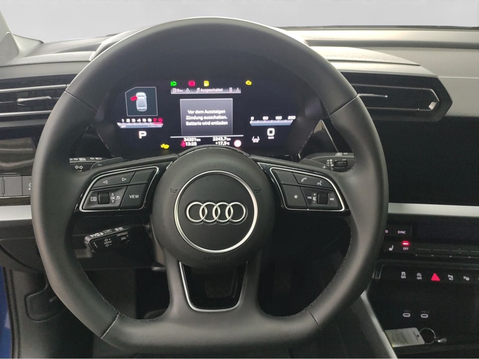 Hersteller-Anschlussgarantie 3 Jahre, max. 100.000 km; **Garantie**; Audi Connect je nach Dienst zeitlich begrenzt; danach kostenpflichtig verlängerbar; Anschlussgarantie 3 Jahre max. 100.000 km; **Getriebe / Antrieb**; Automatik; Frontantrieb; **Pakete**; Ablage-/Gepäckraum Paket; Ambiente Licht Paket; Assistenz Paket Fahren und Parken plus; Business Paket; Klima Paket; Klimatisierungs Paket plus; Komfort Paket II; Komfort Paket plus; Optik Paket Schwarz plus; S line Sport Paket; **Airbags**; Fahrer-/Beifahrerairbag; Interaktionsairbag; Kopfairbag vorn und hinten; Seitenairbag vorn und hinten; **Sicherheit**; Ausweichassistent; Halteassistent; Spurverlassenswarnung; Tagfahrlicht; Abbiegeassistent; Ablenkungserkennung; Antiblockiersystem ABS; Antischlupfregelung ASR; Audi connect Notruf & Service; Beifahrerairbag Deaktivierung; BRS für Fahrzeuge mit E-Antrieb (ESC und eBKV); Einparkhilfe vorn und hinten mit Parklenkassistent; Elektrisches Stabilitätsprogramm ESP; Elektronische Bremskraftverteilung EBV; Fernlichtassistent Light Assist; i-Size Kindersitzbefestigung hinten; ISOFIX Kindersitzbefestigung; ISOFIX Kindersitzbefestigung vorn; Kindersicherung elektrisch; Lichtsensor; Motor-Schleppmoment-Regelung MSR; Müdigkeitserkennung; Notbremsassistent; Notfall Assist; Notruf Service; Regensensor; Reifendruckkontrolle; Rückfahrkamera; Speedlimiter (LIM); top tether Kindersitzverankerung hinten; Verkehrszeichenerkennung; Wegfahrsperre; **Audio & Kommunikation**; Audi connect Navigation & Infotainment plus; MMI Navigation plus mit MMI touch; MMI Radio plus; Audi phone box mit Wireless Charging; Audi smartphone interface; Audi sound system; LTE-Unterstützung für Audi phone box; Audi connect Remote & Control; Digitaler Radioempfang DAB+; MMI Experience plus; zwei USB-Anschlüsse mit Ladefunktion im Fond; Vorbereitung für Functions on Demand; **Komfort**; Fahrer-/Beifahrersitz elektrisch; Lendenwirbelstütze Fahrer-/Beifahrersitz elektrisch 4-Wege; Sitzheizung; Komfortklimaautomatik 3-Zonen; Automatisch abblendender Innenspiegel rahmenlos; Automatische Distanzregelung ACC; Komfortschlüssel / Keyless Entry; Mittelarmlehne vorn; Servotronic; **Interieur**; Sitzbezüge in Stoff; Audi virtual cockpit plus; Sportsitze; Aluminiumoptik im Interieur; Multifunktionssportkonturalcantaralenkrad plus 3-Speichen unten abgeflacht mit Schaltwippen; Netztrennwand; Rücksitzlehne klappbar; **Exterieur**; Sportfahrwerk; Vorbereitung für Anhängerkupplung; Außenspiegel elektrisch verstell-/anklappbar beheizt automatisch abblendend; Beifahrerspiegelabsenkung; Leichtmetallfelgen 17 Zoll 5-W-Speichen-Design; Start-Stop System; **Sonstiges**; Metallic-Lackierung