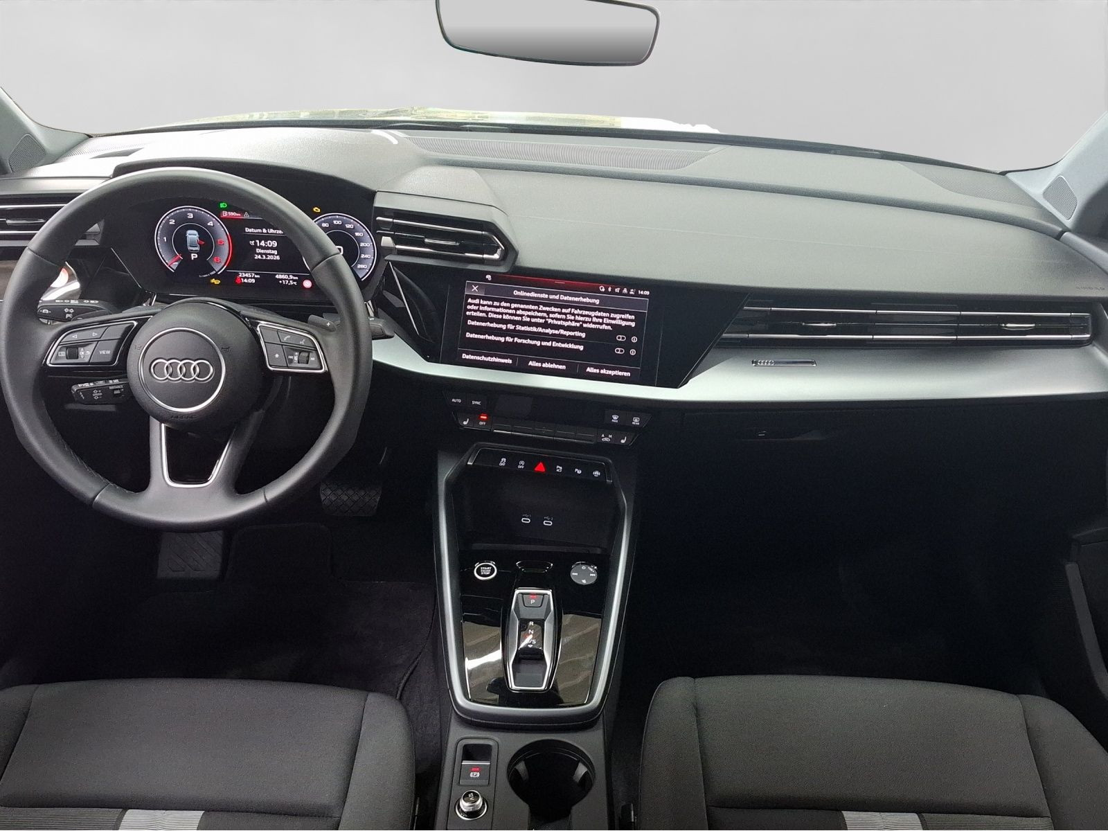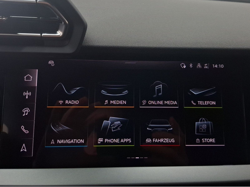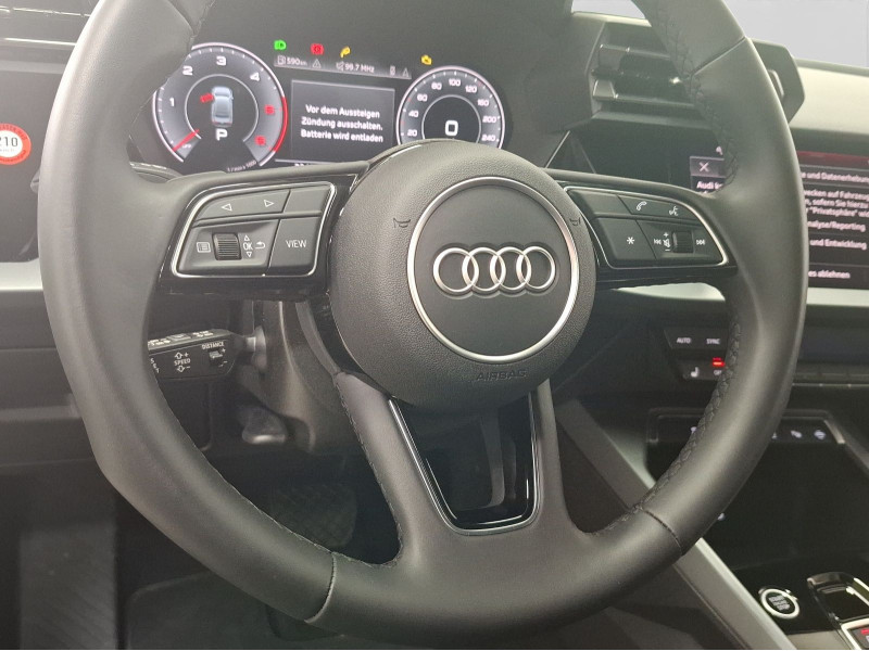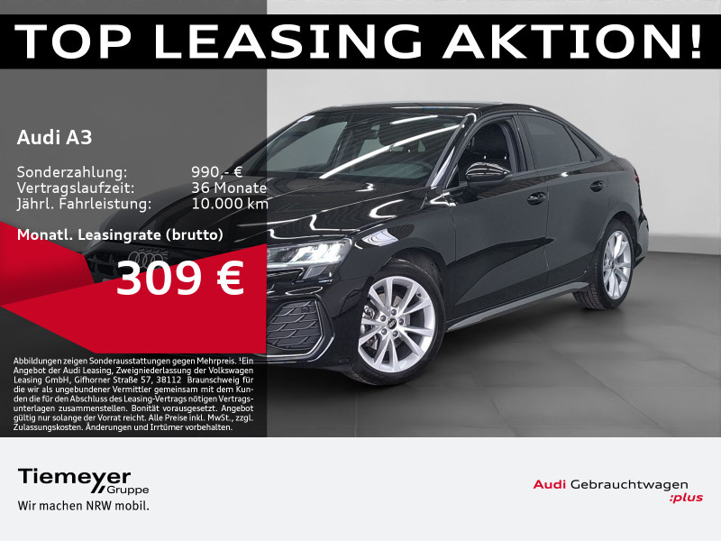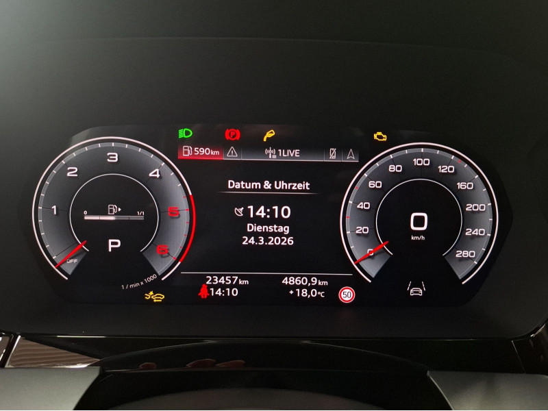 Hersteller-Anschlussgarantie 3 Jahre, max. 100.000 km; **Garantie**; Audi Connect je nach Dienst zeitlich begrenzt; danach kostenpflichtig verlängerbar; Anschlussgarantie 3 Jahre max. 100.000 km; **Getriebe / Antrieb**; Automatik; Frontantrieb; **Pakete**; Ablage-/Gepäckraum Paket; Ambiente Licht Paket; Assistenz Paket Fahren und Parken plus; Business Paket; Klimatisierungs Paket plus; Komfort Paket; S line Sport Paket; **Airbags**; Fahrer-/Beifahrerairbag; Interaktionsairbag; Kopfairbag vorn und hinten; Seitenairbag vorn und hinten; **Sicherheit**; Ausweichassistent; LED Tagfahrlicht; Spurverlassenswarnung; Abbiegeassistent; Ablenkungserkennung; Antiblockiersystem ABS; Antischlupfregelung ASR; Audi connect Notruf & Service; Beifahrerairbag Deaktivierung; BRS für Fahrzeuge ohne E-Antrieb (ESC und eBKV); Einparkhilfe vorn und hinten mit Parklenkassistent; Elektrisches Stabilitätsprogramm ESP; Elektronische Bremskraftverteilung EBV; i-Size Kindersitzbefestigung hinten; ISOFIX Kindersitzbefestigung; Kindersicherung elektrisch; Lichtsensor; Motor-Schleppmoment-Regelung MSR; Müdigkeitserkennung; Notbremsassistent; Notfall Assist; Notruf Service; Regensensor; Reifendruckkontrolle; Rückfahrkamera; Speedlimiter (LIM); top tether Kindersitzverankerung hinten; Verkehrszeichenerkennung; Wegfahrsperre; **Audio & Kommunikation**; Audi connect Navigation & Infotainment plus; MMI Navigation plus mit MMI touch; MMI Radio plus; Audi phone box mit Wireless Charging; Audi smartphone interface; Audi sound system; LTE-Unterstützung für Audi phone box; Audi connect Remote & Control; Digitaler Radioempfang DAB+; MMI Experience plus; zwei USB-Anschlüsse mit Ladefunktion im Fond; Vorbereitung für Functions on Demand; **Komfort**; Fahrersitz elektrisch; Lendenwirbelstütze Fahrer-/Beifahrersitz elektrisch 4-Wege; Sitzheizung; Komfortklimaautomatik 3-Zonen; Automatische Distanzregelung ACC; Elektrische Luftzusatzheizung; Fensterheber elektrisch; Komfortschlüssel / Keyless Entry; Mittelarmlehne vorn; Servotronic; Verglasung hinten abgedunkelt; Zentralverriegelung mit Fernbedienung; **Interieur**; Sitzbezüge in Stoff; Audi virtual cockpit plus; Aluminiumoptik im Interieur; Multifunktionslederlenkrad plus 3-Speichen mit Schaltwippen; Rücksitzlehne klappbar; **Exterieur**; Sportfahrwerk; Außenspiegel elektrisch verstell-/beheizbar; Leichtmetallfelgen 17 Zoll 5-V-Speichen-Design; Start-Stop System; **Sonstiges**; Dieselpartikelfilter DPF; Metallic-Lackierung