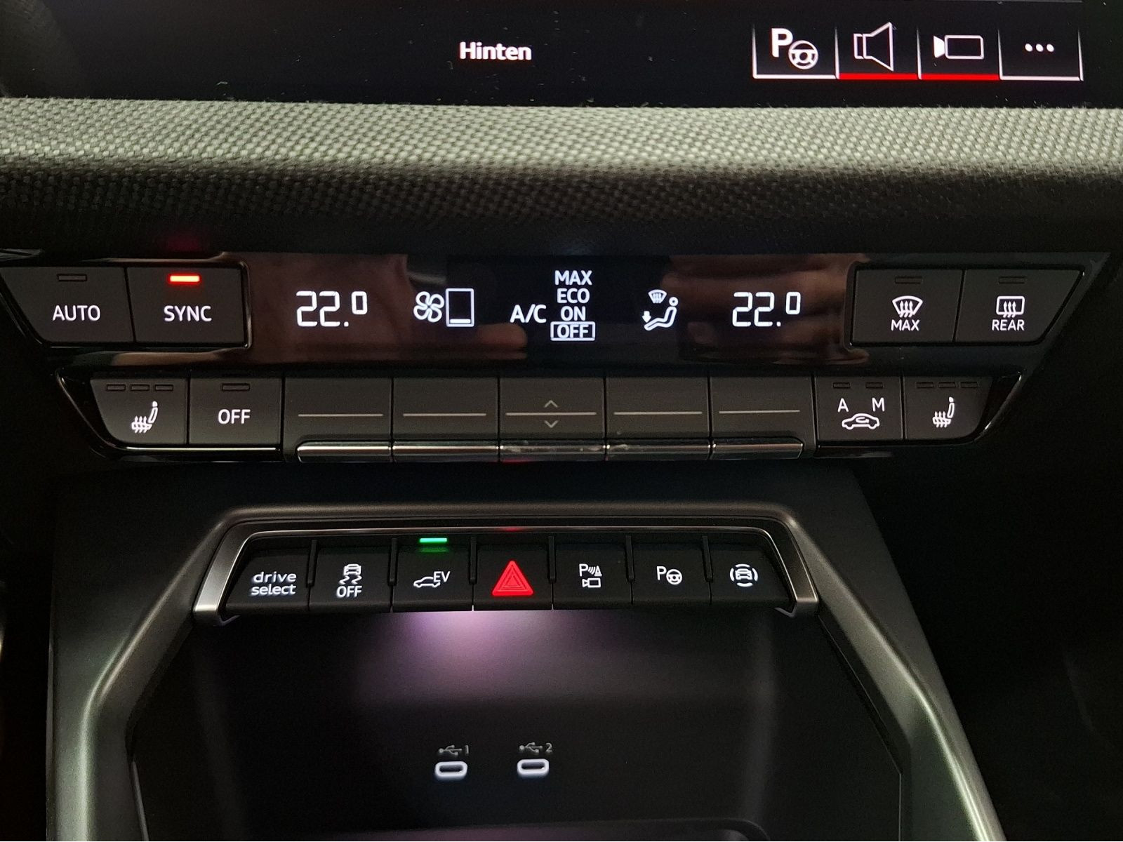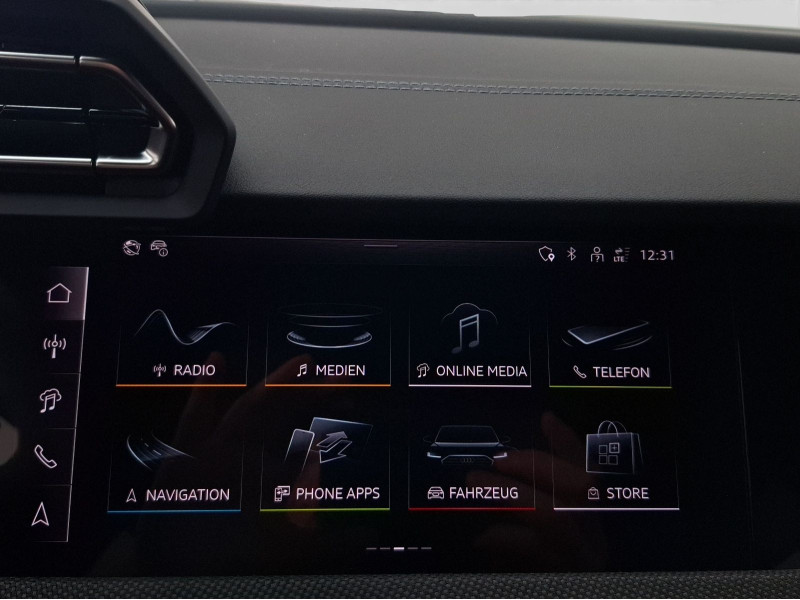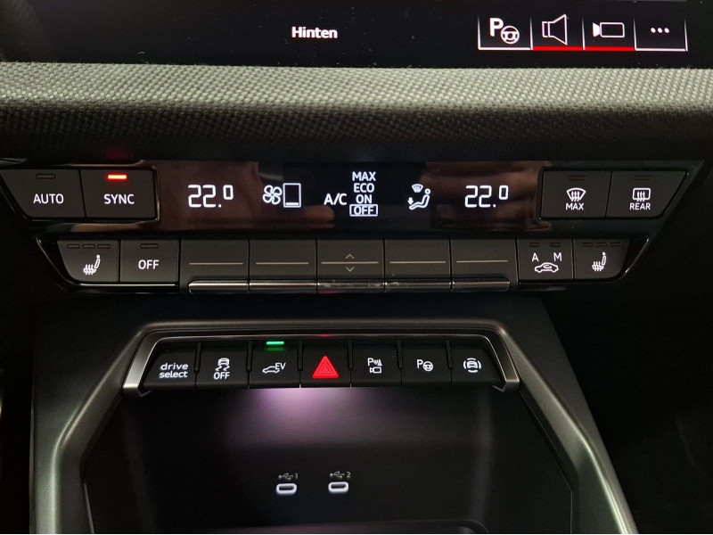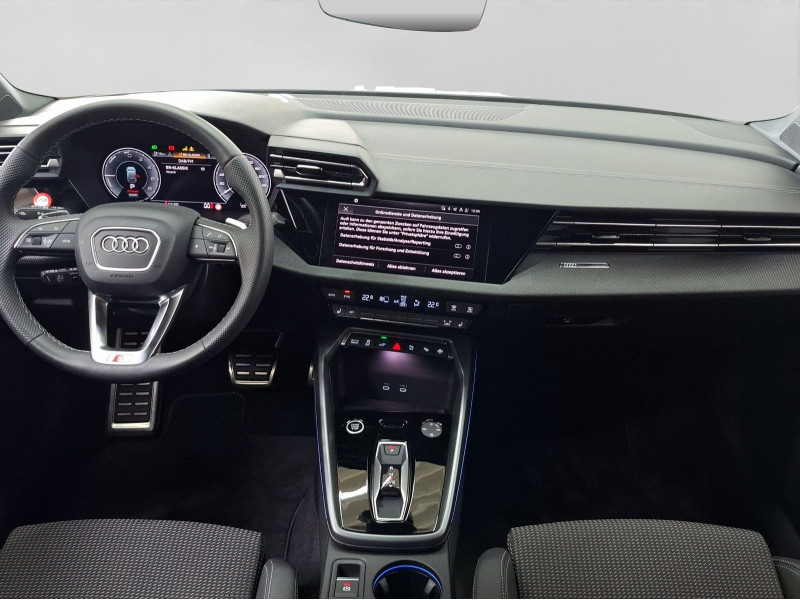 Hersteller-Anschlussgarantie 3 Jahre, max. 100.000 km; **Garantie**; Audi Connect je nach Dienst zeitlich begrenzt; danach kostenpflichtig verlängerbar; Anschlussgarantie 3 Jahre max. 100.000 km; **Getriebe / Antrieb**; Automatik; Frontantrieb; **Pakete**; Ablage-/Gepäckraum Paket; Ambiente Licht Paket pro; Assistenz Paket Fahren und Parken plus; Assistenz Paket Fahren und Parken pro; Assistenz Paket Schutz- und Warnsysteme plus; Business Paket; Klima Paket; Klimatisierungs Paket plus; Komfort Paket II; Komfort Paket plus; Optik Paket Schwarz plus; S line Sport Paket; **Airbags**; Fahrer-/Beifahrerairbag; Interaktionsairbag; Kopfairbag; Seitenairbag; **Sicherheit**; Matrix LED Scheinwerfer; Adaptiver Fahrassistent (AFA); Ausweichassistent; dynamische Lichtinszenierung; Halteassistent; Querverkehrsassistent; Spurhalteassistent Lane Assist; Spurverlassenswarnung; Spurwechselassistent Audi side assist; Tagfahrlicht; Abbiegeassistent; Ablenkungserkennung; Akustisches Fahrzeug-Warnsystem; Antiblockiersystem ABS; Antischlupfregelung ASR; Audi connect Notruf & Service; Ausstiegswarnung; Beifahrerairbag Deaktivierung; BRS für Fahrzeuge mit E-Antrieb (ESC und eBKV); dynamisches Blinklicht; Einparkhilfe vorn und hinten mit Parklenkassistent Plus; Elektrisches Stabilitätsprogramm ESP; Elektronische Bremskraftverteilung EBV; i-Size Kindersitzbefestigung hinten; ISOFIX Kindersitzbefestigung; ISOFIX Kindersitzbefestigung vorn; Kindersicherung elektrisch; Lichtsensor; Motor-Schleppmoment-Regelung MSR; Müdigkeitserkennung; Notbremsassistent; Notfall Assist; Notruf Service; Proaktiver Insassenschutz Front; Seite und Heck; Progressivlenkung; Regensensor; Reifendruckkontrolle; Rückfahrkamera; Speedlimiter (LIM); top tether Kindersitzverankerung hinten; Verkehrszeichenerkennung; Wegfahrsperre; **Audio & Kommunikation**; Audi connect Navigation & Infotainment plus; MMI Navigation plus mit MMI touch; MMI Radio plus; Audi phone box mit Wireless Charging; Audi smartphone interface; Audi sound system; LTE-Unterstützung für Audi phone box; Audi connect Remote & Control; Digitaler Radioempfang DAB+; MMI Experience plus; zwei USB-Anschlüsse mit Ladefunktion im Fond; Vorbereitung für Functions on Demand; **Komfort**; Fahrer-/Beifahrersitz elektrisch; Lendenwirbelstütze Fahrer-/Beifahrersitz elektrisch 4-Wege; Sitzheizung; Standlüftung programmierbar; Komfortklimaautomatik 3-Zonen; Standklimatisierung; Audi drive select; Automatisch abblendender Innenspiegel rahmenlos; Automatische Distanzregelung ACC; Fensterheber elektrisch; Komfortschlüssel / Keyless Entry; Mittelarmlehne vorn; Servotronic; Verglasung hinten abgedunkelt; Zentralverriegelung mit Fernbedienung; **Interieur**; Sitzbezüge in Stoff / Kunstleder; Audi virtual cockpit plus; Dachhimmel in schwarz; Sportsitze; Aluminiumoptik im Interieur; Einstiegleisten mit beleuchteter Aluminiumeinlage; Multifunktionslederlenkrad plus 3-Speichen mit Schaltwippen; Netztrennwand; Rücksitzlehne klappbar; **Exterieur**; Anhängerkupplung; Außenspiegel elektrisch verstell-/anklappbar beheizt automatisch abblendend; Außenspiegelgehäuse in Schwarz hochglänzend; Beifahrerspiegelabsenkung; Dachreling; LED Rückleuchten; Leichtmetallfelgen 18 Zoll 5-Y-Speichen-Design; Scheinwerferreinigungsanlage SRA; Start-Stop System; **Sonstiges**; ECO-Funktion; Metallic-Lackierung; * MMI experience plus; * Infotainmentpaket Connectivity