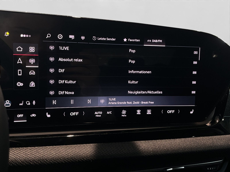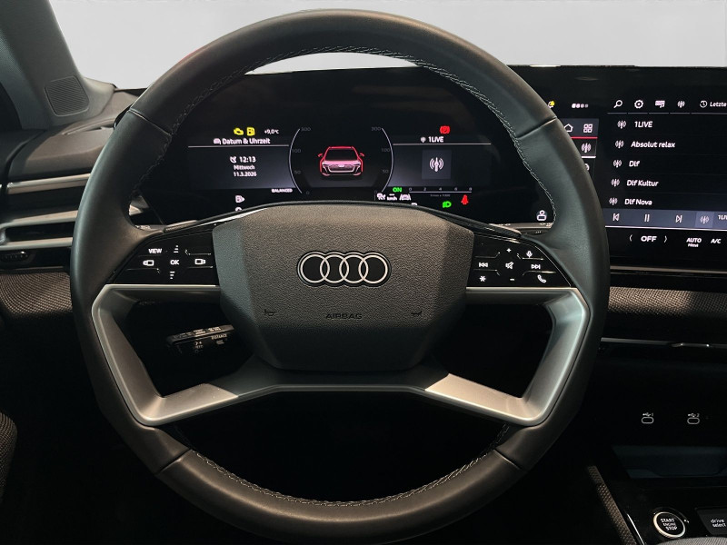 Hersteller-Anschlussgarantie 3 Jahre, max. 100.000 km; **Garantie**; Audi Connect je nach Dienst zeitlich begrenzt; danach kostenpflichtig verlängerbar; Anschlussgarantie 3 Jahre max. 100.000 km; **Getriebe / Antrieb**; Automatik; Frontantrieb; **Pakete**; Assistenz Paket Fahren und Parken; Funktions Paket; Klimatisierungs Paket; Komfort Paket; **Airbags**; Fahrer-/Beifahrerairbag; Interaktionsairbag; Kopfairbag; Seitenairbag; **Sicherheit**; LED Scheinwerfer plus; Assistenzfahrlicht; Ausweichassistent; LED Tagfahrlicht mit Leaving und Coming Home Funktion; Spurhalteassistent Lane Assist; Abbiegeassistent; Antiblockiersystem ABS; Antischlupfregelung ASR; Audi connect Notruf & Service; Aufmerksamkeitserkennung; Beifahrerairbag Deaktivierung; Einparkhilfe vorn und hinten; Elektrisches Stabilitätsprogramm ESP; Elektronische Bremskraftverteilung EBV; Fahrlichtautomatik; Fernlichtassistent Light Assist; i-Size Kindersitzbefestigung vorn und hinten; Kindersicherung elektrisch; Lichtsensor; Motor-Schleppmoment-Regelung MSR; Müdigkeitserkennung; Notbremsassistent; Querverkehrassistent; Reifendruckkontrolle; Rückfahrkamera; top tether Kindersitzverankerung hinten; Verkehrszeichenbasierter Geschwindigkeitsbegrenzer; Verkehrszeichenerkennung; Wegfahrsperre; **Audio & Kommunikation**; Audi connect Navigation & Infotainment; Navigationssystem; Audi smartphone interface; Audi sound system; LTE-Unterstützung für Audi phone box; Telefonablage mit induktiver Ladefunktion und Mobilfunk-Koppelantenne; 2x USB mit Ladefunktion; Audi connect Remote & Control; Digitaler Radioempfang DAB+; MMI Experience plus; MMI Experience pro; USB-Anschlüsse mit Ladefunktion in erster und zweiter Sitzreihe; **Komfort**; Sitzheizung; Gepäckraumklappe elektrisch öffnend und schließend; Komfortklimaautomatik 3-Zonen; Akustikverglasung; Audi drive select; Automatisch abblendender Innenspiegel; Automatische Distanzregelung ACC; Fensterheber elektrisch; Lenkrad verstellbar; Mittelarmlehne vorn; Verglasung hinten abgedunkelt; Zentralverriegelung mit Fernbedienung; **Interieur**; Sitzbezüge in Stoff; Audi virtual cockpit plus; Aluminiumoptik im Interieur; Multifunktionslederlenkrad mit Schaltwippen; Netztrennwand; **Exterieur**; Außenspiegel elektrisch verstell-/anklappbar beheizt automatisch abblendend; Außenspiegel mit Umfeldbeleuchtung; Beifahrerspiegelabsenkung; Heckspoiler; LED-Heckleuchten pro; LED Rückleuchten; Leichtmetallfelgen 18 Zoll 5-Arm-Twist-Design; Projektionsleuchte in den Außenspiegeln; **Sonstiges**; Sitzbelegungserkennung für den Beifahrerairbag; Metallic-Lackierung