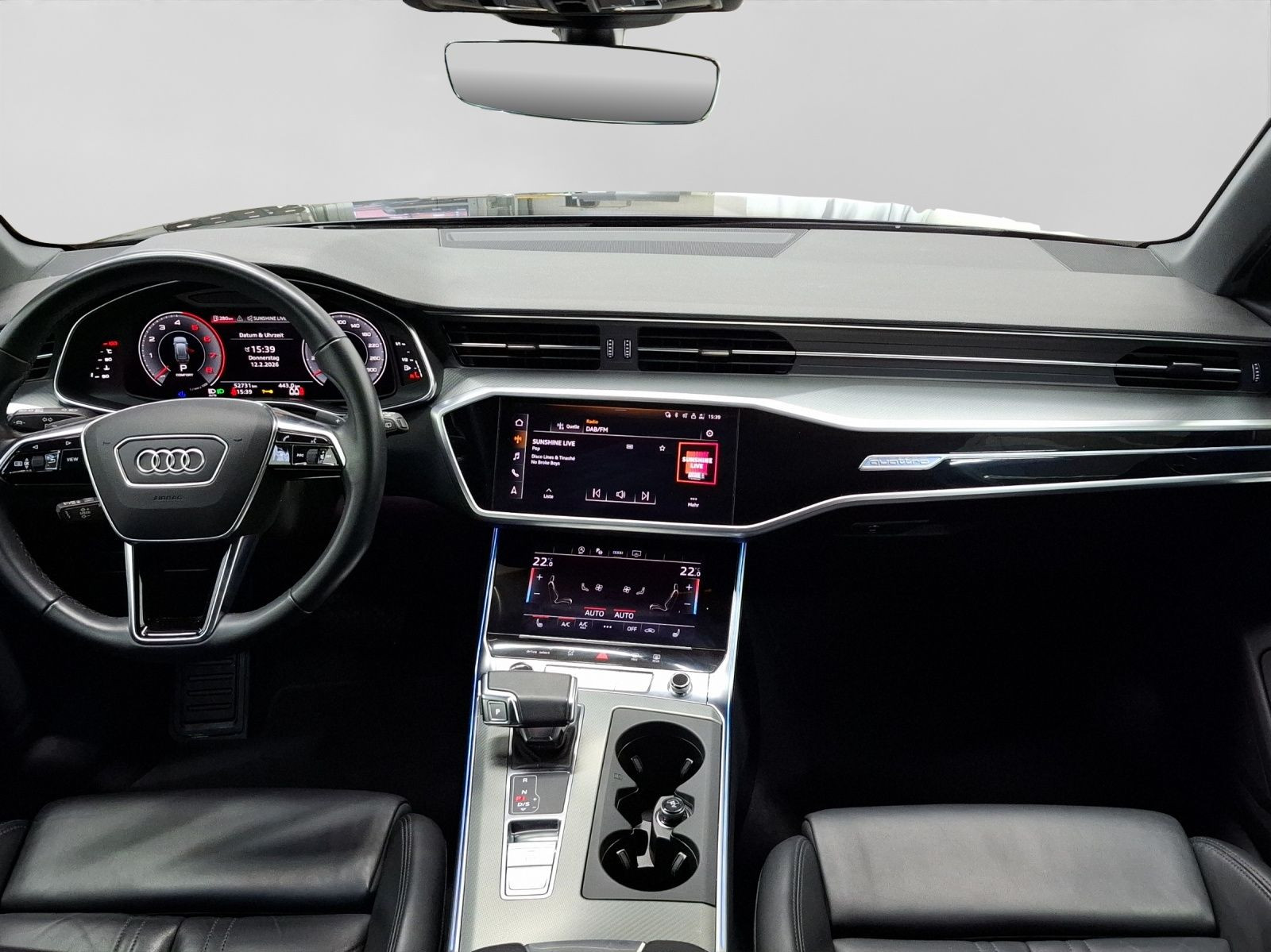 Highlights: Audi Connect je nach Dienst zeitlich begrenzt, danach kostenpflichtig verlängerbar - Hersteller-Anschlussgarantie 3 Jahre, max. 100.000 km Hersteller-Anschlussgarantie 3 Jahre, max. 100.000 km Ausstattungsvariante Sport Garantie Audi Connect je nach Dienst zeitlich begrenzt - danach kostenpflichtig verlängerbar - Anschlussgarantie 3 Jahre max. 100.000 km Getriebe / Antrieb Allradantrieb - Automatik - quattro - S tronic Pakete Ablage Paket - Ambiente Licht Paket plus - Assistenz Paket Tour - Business Paket - Glanz Paket - Kindersicherheits Paket Airbags Fahrer-/Beifahrerairbag - Kopfairbag vorn und hinten - Seitenairbag vorn und hinten Sicherheit LED Scheinwerfer - Adaptiver Fahrassistent (AFA) - Ausweichassistent - LED Tagfahrlicht - Querverkehrs-Assistent Heck (Rear Cross Traffic Alert - RCTA) - Spurwechselassistent Audi side assist - Abbiegeassistent - Antiblockiersystem ABS - Antischlupfregelung ASR - Audi connect Notruf & Service - Audi pre sense front und rear - Ausstiegswarnung - Beifahrerairbag Deaktivierung - Einparkhilfe vorn und hinten mit Parklenkassistent - Elektrisches Stabilitätsprogramm ESP - Elektronische Bremskraftverteilung EBV - Fernlichtassistent Light Assist - Geschwindigkeitsbegrenzer - ISOFIX Kindersitzbefestigung vorn und hinten - Lichtsensor - Motor-Schleppmoment-Regelung MSR - Notfall-Assistent mit automatischem Notruf - Progressivlenkung - Reifendruckkontrolle - Rückfahrkamera - top tether Kindersitzverankerung hinten - Verkehrszeichenerkennung - Wegfahrsperre Audio & Kommunikation Audi connect Navigation & Infotainment - MMI Navigation plus mit MMI touch response - Navigationssystem - Audi phone box mit Wireless Charging - Audi smartphone interface - Audi sound system - LTE-Unterstützung für Audi phone box - Top-Infotainment Premium - Audi connect Remote & Control - Audi music interface - Digitaler Radioempfang DAB+ - Vorbereitung für Functions on Demand Komfort Fahrer-/Beifahrersitz elektrisch - Lendenwirbelstütze Fahrer-/Beifahrersitz elektrisch 4-Wege - Memoryfunktion Fahrersitz - Sitzheizung - adaptive air suspension - Gepäckraumklappe elektrisch öffnend und schließend - Komfortklimaautomatik 4-Zonen - Audi drive select - Automatisch abblendender Innenspiegel rahmenlos - Automatische Distanzregelung ACC - Effizienzassistent - Fensterheber elektrisch vorn und hinten - Getränkehalter 1 (0,3 - 1l) - Komfortmittelarmlehne vorn - Komfortschlüssel / Keyless Entry mit sensorgesteuerter Gepäckraumentriegelung - Servotronic - Geschwindigkeits-Regelanlage - Geschwindigkeitsregelanlage (GRA) - Zentralverriegelung mit Fernbedienung Interieur Lederausstattung Valcona - Sitzbezüge in Leder - Audi virtual cockpit plus - Dachhimmel in schwarz - Sportsitze - Einstiegsleisten Aluminium - Multifunktionslederlenkrad 3-Speichen mit Schaltwippen - Netztrennwand - Rücksitzlehne geteilt/klappbar Exterieur Anhängerkupplung - Panorama Ausstell-/Schiebeglasdach elektrisch - Außenspiegel elektrisch verstell-/anklappbar beheizt automatisch abblendend mit Memory - Beifahrerspiegelabsenkung - Dachreling Aluminium - Heckspoiler - LED Rückleuchten - Leichtmetallfelgen 19 Zoll 10-Speichen-Dynamik-Design - Start-Stop System Sonstiges Sitzbelegungserkennung für den Beifahrerairbag - Metallic-Lackierung