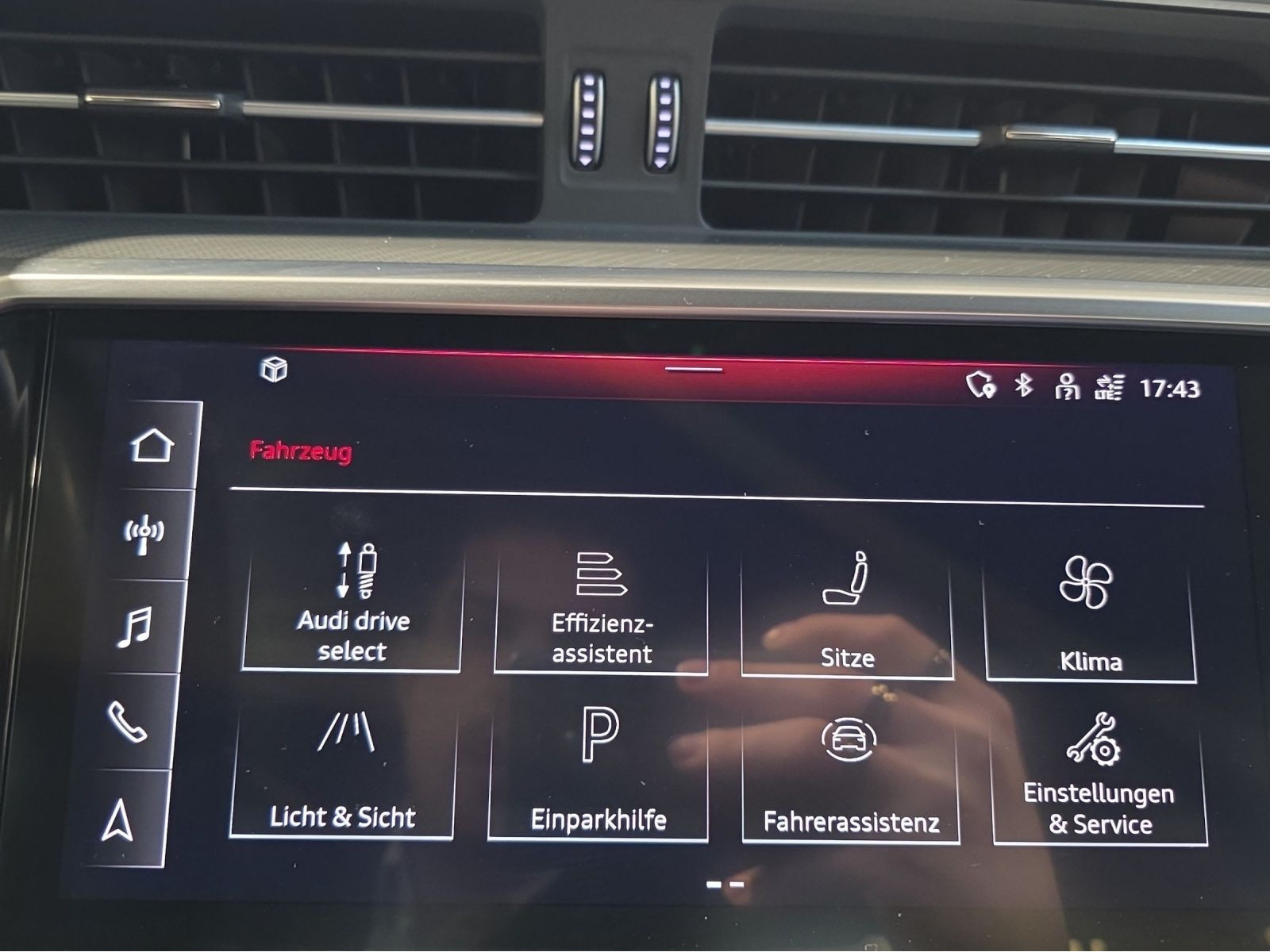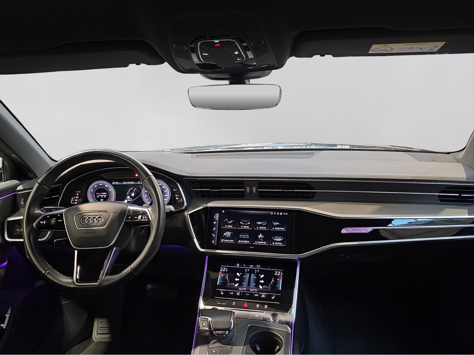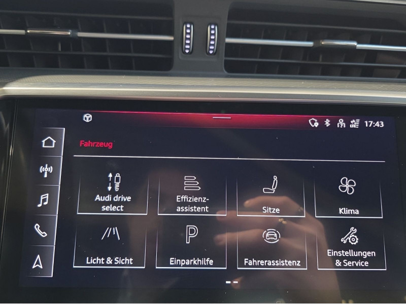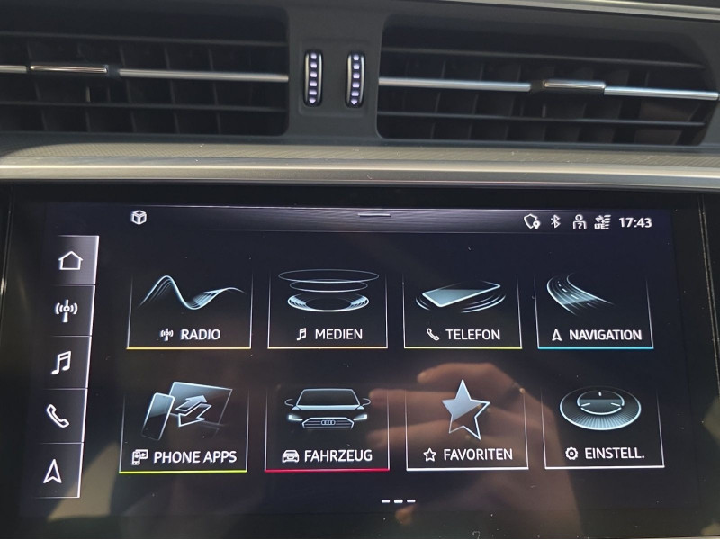 Hersteller-Anschlussgarantie 3 Jahre, max. 100.000 km; **Ausstattungsvariante**; Sport; **Garantie**; Audi Connect je nach Dienst zeitlich begrenzt; danach kostenpflichtig verlängerbar; Anschlussgarantie 3 Jahre max. 100.000 km; **Getriebe / Antrieb**; quattro; S tronic; **Pakete**; Ablage Paket; Ambiente Licht Paket plus; Assistenz Paket Tour; Business Paket; Glanz Paket; Kindersicherheits Paket; **Airbags**; Fahrer-/Beifahrerairbag; Kopfairbag vorn und hinten; Seitenairbag vorn und hinten; **Sicherheit**; LED Scheinwerfer; Adaptiver Fahrassistent (AFA); Ausweichassistent; LED Tagfahrlicht; Querverkehrsassistent; Spurwechselassistent Audi side assist; Abbiegeassistent; Antiblockiersystem ABS; Antischlupfregelung ASR; Audi connect Notruf & Service; Audi pre sense front; Audi pre sense rear; Ausstiegswarnung; Beifahrerairbag Deaktivierung; Einparkhilfe vorn und hinten; Elektrisches Stabilitätsprogramm ESP; Elektronische Bremskraftverteilung EBV; Fernlichtassistent Light Assist; Geschwindigkeitsbegrenzer; ISOFIX Kindersitzbefestigung; Lichtsensor; Motor-Schleppmoment-Regelung MSR; Notfall Assist; Progressivlenkung; Reifendruckkontrolle; Rückfahrkamera; top tether Kindersitzverankerung hinten; Verkehrszeichenerkennung; Wegfahrsperre; **Audio & Kommunikation**; Audi connect Navigation & Infotainment; MMI Navigation plus mit MMI touch response; Navigationssystem; Audi phone box mit Wireless Charging; Audi smartphone interface; Audi sound system; LTE-Unterstützung für Audi phone box; Top-Infotainment Premium; Audi connect Remote & Control; Audi music interface; Digitaler Radioempfang DAB+; Vorbereitung für Functions on Demand; **Komfort**; Fahrer-/Beifahrersitz elektrisch; Lendenwirbelstütze Fahrer-/Beifahrersitz elektrisch 4-Wege; Memoryfunktion Fahrersitz; Sitzheizung; Gepäckraumklappe elektrisch öffnend und schließend; Komfortklimaautomatik 4-Zonen; Audi drive select; Automatisch abblendender Innenspiegel rahmenlos; Automatische Distanzregelung ACC; Effizienzassistent; Komfortmittelarmlehne vorn; Komfortschlüssel / Keyless Entry mit sensorgesteuerter Gepäckraumentriegelung; Servotronic; **Interieur**; Sitzbezüge in Leder Valcona; Audi virtual cockpit plus; Dachhimmel in schwarz; Sportsitze; Rücksitzlehne geteilt/klappbar; **Exterieur**; Anhängerkupplung; Außenspiegel elektrisch verstell-/anklappbar beheizt automatisch abblendend mit Memory; LED Rückleuchten; Leichtmetallfelgen 19 Zoll 5-Doppelspeichen-Design; Start-Stop System; **Sonstiges**; Sitzbelegungserkennung für den Beifahrerairbag; HU/AU Neu; Metallic-Lackierung