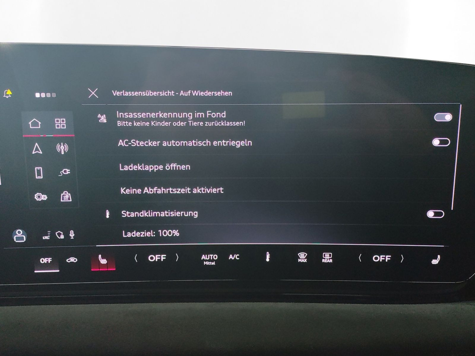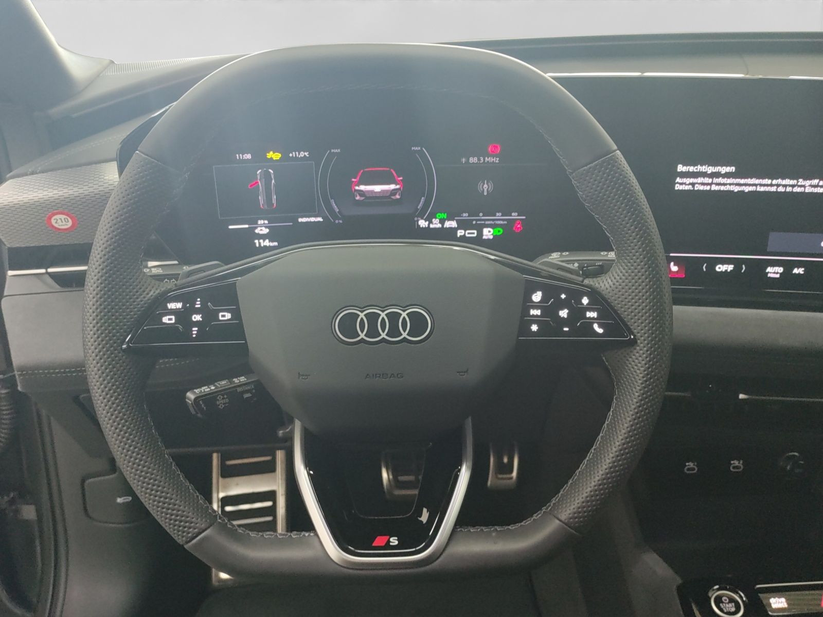 Highlights: Audi Connect je nach Dienst zeitlich begrenzt, danach kostenpflichtig verlängerbar - Hersteller-Anschlussgarantie 3 Jahre, max. 100.000 km Hersteller-Anschlussgarantie 3 Jahre, max. 100.000 km Garantie Audi Connect je nach Dienst zeitlich begrenzt - danach kostenpflichtig verlängerbar - Anschlussgarantie 3 Jahre max. 100.000 km Batterie Hochvolt-Batterie 100 kWh (brutto) / 94,9 kWh (netto) Getriebe / Antrieb Heckantrieb Pakete Ambiente Licht Paket - Assistenz Paket Fahren und Parken plus - Assistenz Paket Schutz- und Warnsysteme plus - Interieur Paket - Klimatisierungs Paket Winter - Komfort Paket plus - S line Exterieur Paket - S line Sport Paket Airbags Fahrer-/Beifahrerairbag - Interaktionsairbag - Kopfairbag vorn und hinten - Seitenairbag vorn und hinten Sicherheit 360 Grad Kamera - Area View - LED Scheinwerfer plus - Matrix LED Scheinwerfer - Top View Camera - Adaptiver Fahrassistent plus - Assistenzfahrlicht - Ausweichassistent - Halteassistent - Spurhalteassistent Lane Assist - Spurverlassenswarnung - Spurwechselassistent Side Assist - Tagfahrlicht mit Leaving und Coming Home Funktion - Abbiegeassistent - Abbiegeassistent hinten - Akustischer Fußgängerschutz (Außensound) - Antiblockiersystem ABS - Antischlupfregelung ASR - Audi connect Notruf & Service - Aufmerksamkeitserkennung - Ausstiegswarnung - Beifahrerairbag Deaktivierung - Diebstahlwarnanlage - Einparkhilfe vorn und hinten - Elektrisches Stabilitätsprogramm ESP - Elektronische Bremskraftverteilung EBV - Fahrlichtautomatik - Insassenerkennung im Fond - i-Size Kindersitzbefestigung vorn und hinten - Kindersicherung elektrisch - Lichtsensor - Motor-Schleppmoment-Regelung MSR - Müdigkeitserkennung - Notbremsassistent - Notfall Assist - Proaktiver Insassenschutz Front - Seite und Heck - Querverkehrassistent - Querverkehrassistent hinten - Reifendruckkontrolle - top tether Kindersitzverankerung hinten - Verkehrszeichenbasierter Geschwindigkeitsbegrenzer - Verkehrszeichenerkennung Audio & Kommunikation Audi connect Navigation & Infotainment - Navigationssystem - Audi smartphone interface - Audi sound system - LTE-Unterstützung für Audi phone box - MMI Beifahrerdisplay - Telefonablage mit induktiver Ladefunktion und Mobilfunk-Koppelantenne - 4 USB-Anschlüsse (2 vorne - 2 hinten) - Audi connect Remote & Control - Digitaler Radioempfang DAB+ Komfort Fahrer-/Beifahrersitz elektrisch - Lendenwirbelstütze Fahrer-/Beifahrersitz elektrisch 4-Wege - Memoryfunktion Fahrersitz - Sitzheizung vorn und hinten - Standheizung/-lüftung programmierbar - Gepäckraumklappe elektrisch öffnend und schließend - Komfortklimaautomatik 3-Zonen - Standklimatisierung - Akustikverglasung - Audi drive select - Automatisch abblendender Innenspiegel - Automatische Distanzregelung ACC - Digitaler Schlüssel - Elektrische Luftzusatzheizung - Fensterheber elektrisch - Komfortschlüssel / Keyless Entry mit Safe-Sicherung - Mittelarmlehne vorn - Verglasung hinten abgedunkelt - Zentralverriegelung mit Fernbedienung Interieur Sitzbezüge in Alcantara / Leder - Audi virtual cockpit plus - Dachhimmel in schwarz - Sportsitze - Einstiegsleisten Aluminium beleuchtet - Gepäckraumabdeckung - Lenkradheizung - Multifunktionslederlenkrad mit Schaltwippen - Multifunktionssportlederlenkrad 3-Speichen oben und unten abgeflacht mit Schaltwippen - Netztrennwand - Rücksitzbank ungeteilt Lehne geteilt umlegbar (dreiteilig) mit Mittelarmlehne Exterieur Anhängerkupplung anklappbar - Dynamikfahrwerk - Außenspiegel elektrisch verstell-/anklappbar beheizt automatisch abblendend mit Memory - Beifahrerspiegelabsenkung - Dachspoiler - Leichtmetallfelgen 21 Zoll - Scheinwerferreinigungsanlage SRA Sonstiges CCS Ladedose - e-tron Ladesystem kompakt - Haushaltsstecker Typ E/F für das e-tron Ladesystem - Industriestecker CEE 16A 400V lang und gerade für das e-tron Ladesystem - Wandhalterung Clip - Wärmepumpe - zweiter AC-Ladezugang (Beifahrerseite) - Fußstütze und Pedalkappen in Edelstahl - Sitzbelegungserkennung für den Beifahrerairbag - Metallic-Lackierung - * Matrix-Funktion - * Memory-Funktion - * e-tron Sportsound - * MMI experience plus - * Tech plus - * Räder - * Vielspeichen-S graphitgrau glanzgedreht 8 - * 5J|9 - 5Jx21 Reifen 245/40|275/35 R21