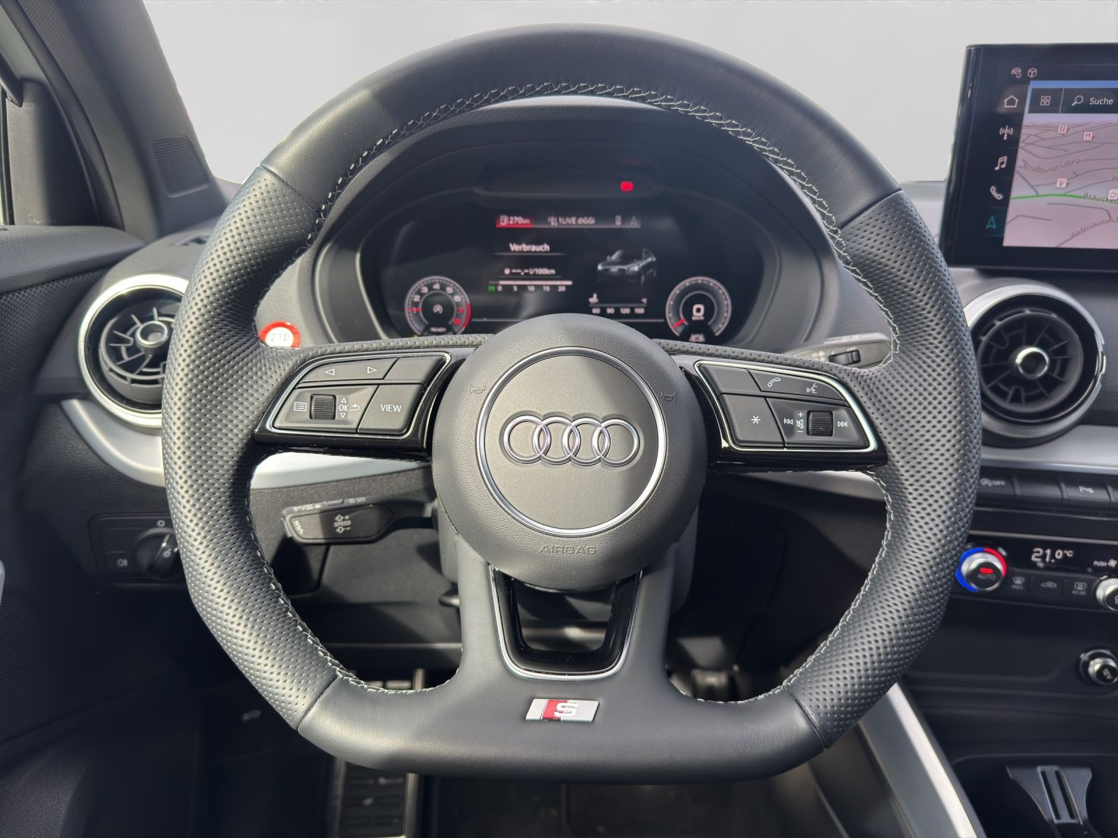 Hersteller-Anschlussgarantie 3 Jahre, max. 100.000 km; **Ausstattungsvariante**; S line; **Garantie**; Audi Connect je nach Dienst zeitlich begrenzt; danach kostenpflichtig verlängerbar; Anschlussgarantie 3 Jahre max. 100.000 km; **Getriebe / Antrieb**; Frontantrieb; Schaltgetriebe; **Pakete**; Ablage-/Gepäckraum Paket; Ambiente Licht Paket; Assistenz Paket Parken; Funktions Paket; Kindersicherheits Paket; Klima Paket; Komfort Paket; Komfort Paket plus; Komfort Paket Sitze; Optik Paket Schwarz; S line Interieur Paket; **Airbags**; Fahrer-/Beifahrerairbag; Kopfairbag vorn und hinten; Seitenairbag; **Sicherheit**; LED Scheinwerfer; Halteassistent; Spurhalteassistent Lane Assist; Tagfahrlicht; Ablenkungserkennung; Antiblockiersystem ABS; Antischlupfregelung ASR; Audi connect Notruf & Service; Audi pre sense front; Beifahrerairbag Deaktivierung; Einparkhilfe vorn und hinten; Elektrisches Stabilitätsprogramm ESP; Elektronische Bremskraftverteilung EBV; Fernlichtassistent Light Assist; ISOFIX Kindersitzbefestigung; ISOFIX Kindersitzbefestigung vorn; Kindersicherung elektrisch; Motor-Schleppmoment-Regelung MSR; Müdigkeitserkennung; Progressivlenkung; Reifendruckkontrolle; Rückfahrkamera; top tether Kindersitzverankerung hinten; Verkehrszeichenerkennung; Wegfahrsperre; Bremsbelagverschleißkontrolle; **Audio & Kommunikation**; Audi connect Navigation & Infotainment; MMI Navigation plus mit MMI touch; Navigationssystem; Audi phone box mit Wireless Charging; Audi sound system; LTE-Unterstützung für Audi phone box; Audi connect Remote & Control; Digitaler Radioempfang DAB+; USB-Ladeschnittstellen im Fond; **Komfort**; Beifahrersitz höhenverstellbar; Lendenwirbelstütze Fahrer-/Beifahrersitz elektrisch 4-Wege; Sitzheizung; Gepäckraumklappe elektrisch öffnend und schließend; Komfortklimaautomatik; Akustikverglasung; Automatisch abblendender Innenspiegel rahmenlos; Fensterheber elektrisch vorn und hinten; Komfortmittelarmlehne vorn; Komfortschlüssel / Keyless Entry; Servotronic; Geschwindigkeits-Regelanlage - Geschwindigkeitsregelanlage (GRA); Verglasung hinten abgedunkelt; **Interieur**; Sitzbezüge in Stoff / Leder; Audi virtual cockpit; Dachhimmel in schwarz; Sportsitze; Aluminiumoptik im Interieur; Dekoreinlagen Aluminium matt gebürstet; Einstiegleisten mit beleuchteter Aluminiumeinlage; Multifunktionssportkonturlederlenkrad plus 3-Speichen unten abgeflacht; Rücksitzlehne geteilt/klappbar; **Exterieur**; Anhängerkupplung; Sportfahrwerk; Außenspiegel elektrisch verstell-/anklappbar beheizt automatisch abblendend; Beifahrerspiegelabsenkung; Dachspoiler; Leichtmetallfelgen 17 Zoll 5-Arm-Stern-Design; Rekuperation - Bremsenergierückgewinnung; Start-Stop System; **Sonstiges**; 4 Türen; Waschwasser-Standanzeige; Metallic-Lackierung; * Stylepaket schwarz matt