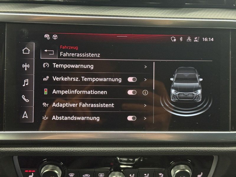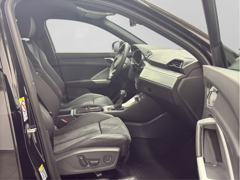 Hersteller-Anschlussgarantie 3 Jahre, max. 100.000 km; **Garantie**; Audi Connect je nach Dienst zeitlich begrenzt; danach kostenpflichtig verlängerbar; Anschlussgarantie 3 Jahre max. 100.000 km; **Getriebe / Antrieb**; Frontantrieb; S tronic; **Pakete**; Ablage-/Gepäckraum Paket; Ambiente Licht Paket; Kindersicherheits Paket; Optik Paket Schwarz; S line Sport Paket; **Airbags**; Fahrer-/Beifahrerairbag; Kopfairbag vorn und hinten; Seitenairbag vorn und hinten; **Sicherheit**; LED Scheinwerfer; Halteassistent; LED Tagfahrlicht; Spurhalteassistent Lane Assist; Ablenkungserkennung; Antiblockiersystem ABS; Antischlupfregelung ASR; Audi connect Notruf & Service; Audi pre sense; Audi pre sense front; Beifahrerairbag Deaktivierung; Berganfahrassistent; dynamisches Blinklicht; Einparkhilfe vorn und hinten; Elektrisches Stabilitätsprogramm ESP; Elektronische Bremskraftverteilung EBV; ISOFIX Kindersitzbefestigung; ISOFIX Kindersitzbefestigung vorn; Kindersicherung elektrisch; Lichtsensor; Motor-Schleppmoment-Regelung MSR; Müdigkeitserkennung; Progressivlenkung; Regensensor; Reifendruckkontrolle; Rückfahrkamera; top tether Kindersitzverankerung hinten; Verkehrszeichenerkennung; Wegfahrsperre; **Audio & Kommunikation**; Audi connect Navigation & Infotainment plus; MMI Navigation plus mit MMI touch; Navigationssystem; Audi phone box mit Wireless Charging; Audi smartphone interface; Audi sound system; LTE-Unterstützung für Audi phone box; Sprachsteuerung; Audi connect Remote & Control; Digitaler Radioempfang DAB+; **Komfort**; Fahrer-/Beifahrersitz elektrisch; Lendenwirbelstütze Fahrer-/Beifahrersitz elektrisch 4-Wege; Memoryfunktion Fahrersitz; Sitzheizung; Gepäckraumklappe elektrisch öffnend und schließend; Komfortklimaautomatik 2-Zonen; Audi drive select; Automatisch abblendender Innenspiegel rahmenlos; Automatische Distanzregelung ACC; Fensterheber elektrisch; Komfortmittelarmlehne vorn; Komfortschlüssel / Keyless Entry; Servotronic; Verglasung hinten abgedunkelt; **Interieur**; Sitzbezüge in Alcantara / Kunstleder; Audi virtual cockpit; Dachhimmel in schwarz; Sportsitze; Akzentflächen schwarz glänzend; Einstiegleisten mit beleuchteter Aluminiumeinlage; Einstiegsleisten Aluminium beleuchtet; Multifunktionslederlenkrad plus 3-Speichen mit Schaltwippen; **Exterieur**; Anhängerkupplung; Sportfahrwerk; Außenspiegel elektrisch verstell-/anklappbar beheizt mit Memory; Ganzjahresreifen; Heckspoiler; LED-Heckleuchten plus; LED Rückleuchten; Leichtmetallfelgen 18 Zoll 5-V-Speichen-Design (S-Design); Rekuperation - Bremsenergierückgewinnung; Seitliche Dekorfolien; Start-Stop System; Leuchtweitenregulierung; **Sonstiges**; ECO-Funktion; Sitzbelegungserkennung für den Beifahrerairbag; Waschwasser-Standanzeige; Metallic-Lackierung