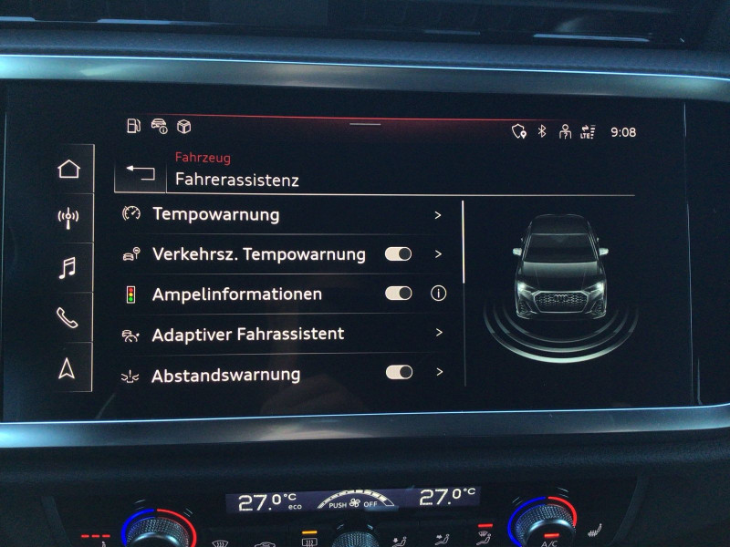 Hersteller-Anschlussgarantie 3 Jahre, max. 100.000 km; **Garantie**; Audi Connect je nach Dienst zeitlich begrenzt; danach kostenpflichtig verlängerbar; Anschlussgarantie 3 Jahre max. 100.000 km; **Getriebe / Antrieb**; Frontantrieb; S tronic; **Pakete**; Ablage-/Gepäckraum Paket; Ambiente Licht Paket; Kindersicherheits Paket; Optik Paket Schwarz; S line Sport Paket; **Airbags**; Fahrer-/Beifahrerairbag; Kopfairbag vorn und hinten; Seitenairbag vorn und hinten; **Sicherheit**; LED Scheinwerfer; Halteassistent; LED Tagfahrlicht; Spurhalteassistent Lane Assist; Ablenkungserkennung; Antiblockiersystem ABS; Antischlupfregelung ASR; Audi connect Notruf & Service; Audi pre sense; Audi pre sense front; Beifahrerairbag Deaktivierung; Berganfahrassistent; dynamisches Blinklicht; Einparkhilfe vorn und hinten; Elektronische Bremskraftverteilung EBV; Elektronische Stabilitätskontrolle ESC; ISOFIX Kindersitzbefestigung; ISOFIX Kindersitzbefestigung vorn; Kindersicherung elektrisch; Lichtsensor; Motor-Schleppmoment-Regelung MSR; Müdigkeitserkennung; Progressivlenkung; Regensensor; Reifendruckkontrolle; Rückfahrkamera; top tether Kindersitzverankerung hinten; Verkehrszeichenerkennung; Wegfahrsperre; **Audio & Kommunikation**; Audi connect Navigation & Infotainment plus; MMI Navigation plus mit MMI touch; Navigationssystem; Audi phone box mit Wireless Charging; Audi smartphone interface; Audi sound system; LTE-Unterstützung für Audi phone box; Sprachsteuerung; Audi connect Remote & Control; Digitaler Radioempfang DAB+; **Komfort**; Fahrer-/Beifahrersitz elektrisch; Lendenwirbelstütze Fahrer-/Beifahrersitz elektrisch 4-Wege; Memoryfunktion Fahrersitz; Sitzheizung; Gepäckraumklappe elektrisch öffnend und schließend; Komfortklimaautomatik 2-Zonen; Audi drive select; Automatisch abblendender Innenspiegel rahmenlos; Automatische Distanzregelung ACC; Elektrische Luftzusatzheizung; Fensterheber elektrisch; Komfortmittelarmlehne vorn; Komfortschlüssel / Keyless Entry; Servotronic; Verglasung hinten abgedunkelt; **Interieur**; Sitzbezüge in Alcantara / Kunstleder; Audi virtual cockpit; Dachhimmel in schwarz; Sportsitze; Akzentflächen schwarz glänzend; Einstiegleisten mit beleuchteter Aluminiumeinlage; Einstiegsleisten Aluminium beleuchtet; Multifunktionslederlenkrad plus 3-Speichen mit Schaltwippen; **Exterieur**; Anhängerkupplung; Sportfahrwerk; Außenspiegel elektrisch verstell-/anklappbar beheizt mit Memory; Ganzjahresreifen; Heckspoiler; LED-Heckleuchten plus; LED Rückleuchten; Leichtmetallfelgen 18 Zoll 5-V-Speichen-Design (S-Design); Rekuperation - Bremsenergierückgewinnung; Seitliche Dekorfolien; Start-Stop System; Leuchtweitenregulierung; **Sonstiges**; ECO-Funktion; Ladekantenschutz Edelstahl; Sitzbelegungserkennung für den Beifahrerairbag; Waschwasser-Standanzeige; Dieselpartikelfilter DPF; Metallic-Lackierung