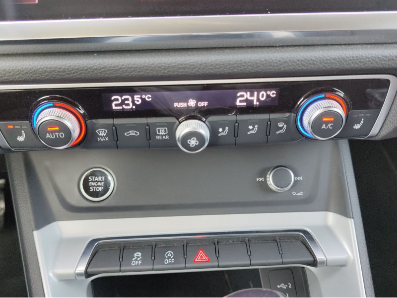 Hersteller-Anschlussgarantie 3 Jahre, max. 100.000 km; **Garantie**; Audi Connect je nach Dienst zeitlich begrenzt; danach kostenpflichtig verlängerbar; Anschlussgarantie 3 Jahre max. 100.000 km; **Getriebe / Antrieb**; Automatik; Frontantrieb; S tronic; **Pakete**; Ambiente Licht Paket; Kindersicherheits Paket; Komfort Paket; Optik Paket Schwarz; S line Sport Paket; **Airbags**; Fahrer-/Beifahrerairbag; Kopfairbag vorn und hinten; Seitenairbag; **Sicherheit**; LED Tagfahrlicht; Spurhalteassistent Lane Assist; Antiblockiersystem ABS; Antischlupfregelung ASR; Audi connect Notruf & Service; Audi pre sense; Audi pre sense front; Beifahrerairbag Deaktivierung; Berganfahrassistent; BRS für Fahrzeuge mit E-Antrieb (ESC und eBKV); Einparkhilfe; Elektrisches Stabilitätsprogramm ESP; Elektronische Bremskraftverteilung EBV; Fernlichtassistent Light Assist; ISOFIX Kindersitzbefestigung; ISOFIX Kindersitzbefestigung vorn; Kindersicherung elektrisch; Lichtsensor; Motor-Schleppmoment-Regelung MSR; Notfall-Assistent mit automatischem Notruf; Regensensor; Reifendruckkontrolle; top tether Kindersitzverankerung hinten; Wegfahrsperre; **Audio & Kommunikation**; MMI basic plus; MMI Radio plus; Audi smartphone interface; Audi sound system; Handy / Telefon Freisprecheinrichtung Bluetooth; Sprachsteuerung; 6 Lautsprecher; Audi connect Remote & Control; Digitaler Radioempfang DAB+; **Komfort**; Sitzheizung; Standheizung/-lüftung programmierbar mit Fernbedienung; Gepäckraumklappe elektrisch öffnend und schließend; Komfortklimaautomatik 3-Zonen; Akustikverglasung; Automatisch abblendender Innenspiegel rahmenlos; Fensterheber elektrisch; Komfortmittelarmlehne vorn; Komfortschlüssel / Keyless Entry; Privacy Verglasung; Servotronic; Geschwindigkeits-Regelanlage - Geschwindigkeitsregelanlage (GRA); Zentralverriegelung mit Fernbedienung; **Interieur**; Sitzbezüge in Stoff; Digitales Cockpit; Sportsitze; Akzentflächen schwarz glänzend; Dekoreinlagen Micrometallic; Einstiegleisten mit beleuchteter Aluminiumeinlage; Einstiegsleisten Aluminium beleuchtet; Multifunktionslederlenkrad plus 3-Speichen; Multifunktionslenkrad 3-Speichen; Rücksitzbank plus; **Exterieur**; Sportfahrwerk; Außenspiegel elektrisch verstell-/anklappbar beheizt; Außenspiegelgehäuse und Türgriffe in Wagenfarbe; Beifahrerspiegelabsenkung; Dachreling schwarz; Heckspoiler; Leichtmetallfelgen 19 Zoll Audi Sport 7-Speichen-Rotor-Design; Rekuperation - Bremsenergierückgewinnung; Seitliche Dekorfolien; Start-Stop System; Stoßfänger in Wagenfarbe; Leuchtweitenregulierung automatisch; **Sonstiges**; Ladekantenschutz Edelstahl; Sitzbelegungserkennung für den Beifahrerairbag; Waschwasser-Standanzeige; * Anschlussgarantie endet 01/2027 oder bei Max. 100.000KM