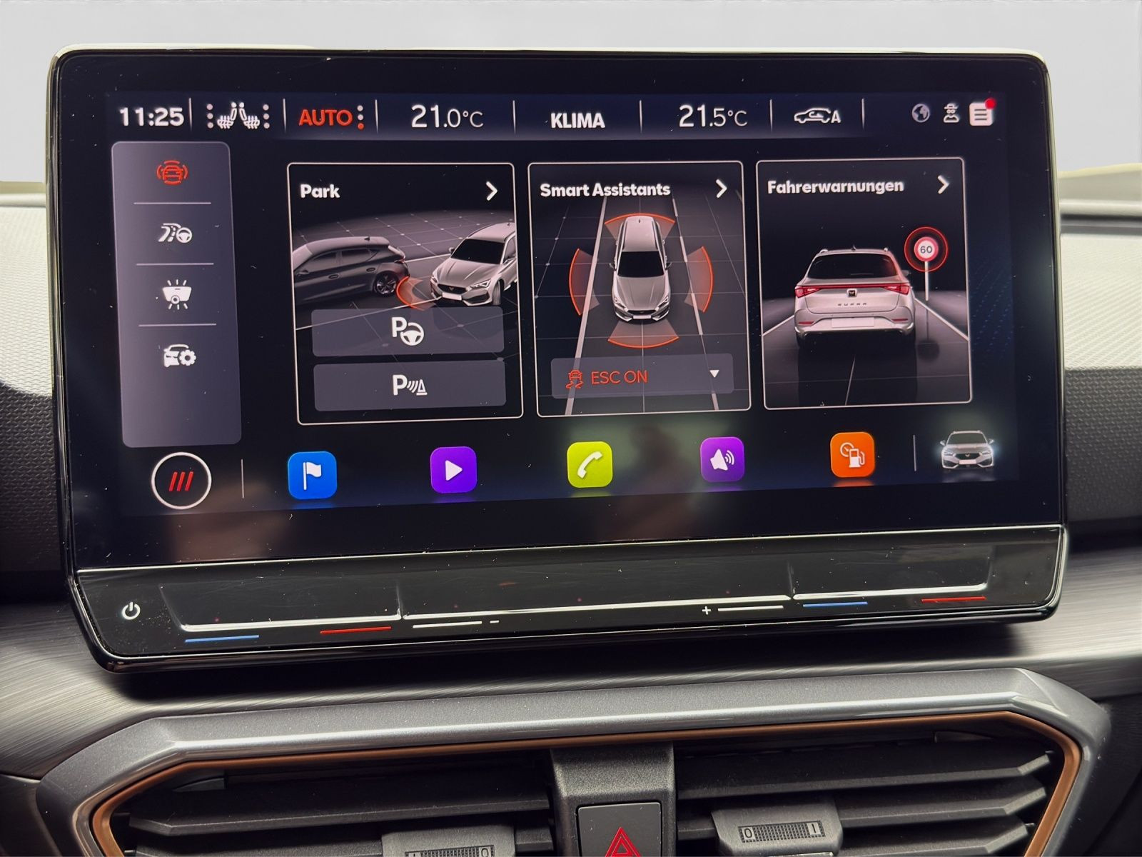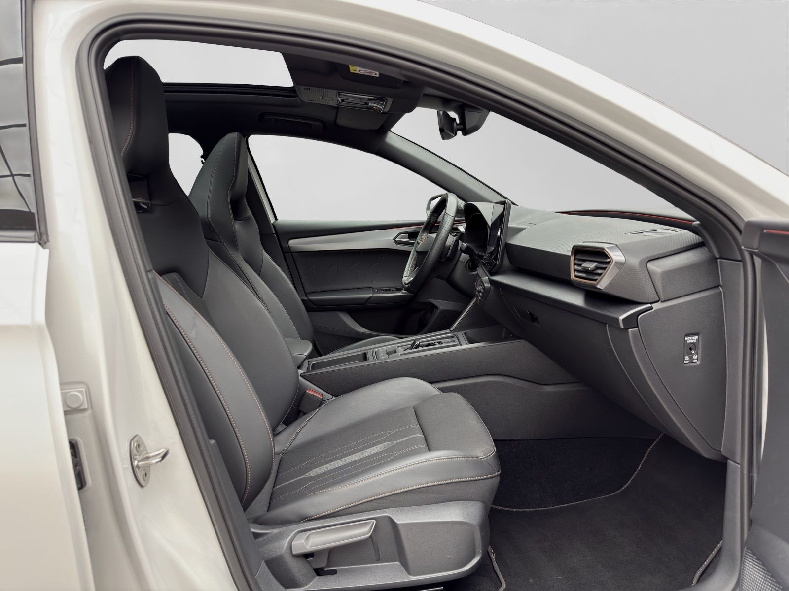 **Getriebe / Antrieb, Automatik, Frontantrieb, Pakete, Safe & Driving Paket XL, Airbags, Fahrer-/Beifahrerairbag, Interaktionsairbag, Kopfairbag, Seitenairbag, Sicherheit, Matrix LED Scheinwerfer, Assistenzfahrlicht, Ausparkassistent - Rear Traffic Alert, LED Tagfahrlicht mit Leaving und Coming Home Funktion, Spurhalteassistent Lane Assist Plus, Spurwechselassistent Side Assist, Stauassistent, Abbiegeassistent, Antiblockiersystem ABS, Antischlupfregelung ASR, Ausstiegswarnung, Ausweichunterstützung, Beifahrerairbag Deaktivierung, Diebstahlwarnanlage mit Innenraumüberwachung und Abschleppschutz, dynamisches Blinklicht, Einparkhilfe vorn und hinten mit Parklenkassistent, Elektrisches Stabilitätsprogramm ESP, Elektronische Bremskraftverteilung EBV, Emergency Assist, Fahrlichtautomatik, Geschwindigkeitsbegrenzer, i-Size Kindersitzbefestigung hinten, ISOFIX Kindersitzbefestigung vorn, Lichtsensor, Motor-Schleppmoment-Regelung MSR, Müdigkeitserkennung, Nebelscheinwerfer, Notruffunktion Emergency Call, Regensensor, Reifendruckkontrolle, Rückfahrkamera Rear View, top tether Kindersitzverankerung hinten, Umfeldbeobachtungssystem Front Assist, Verkehrszeichenerkennung, Audio & Kommunikation, Navigationssystem +, BeatsAudio Soundsystem, Handy / Telefon Freisprecheinrichtung Comfort mit induktiver Ladefunktion, Sprachsteuerung, Audio-Schnittstelle USB - 2x vorn 2x hinten, Connectivity Box, Digitaler Radioempfang DAB+, Full Link, Mapcare: Kartenmaterial-Update des Navigationssystems, Online-Connectivity-Unit, SEAT CONNECT gen3, SEAT CONNECT gen3 - Medien & Internet, Komfort, Fahrer-/Beifahrersitz elektrisch, Fahrer-/Beifahrersitz höhenverstellbar, Fahrersitz elektrisch mit Memory, Fahrprofilauswahl, Sitzheizung, Bedienungselemente in der 2.Sitzreihe für Climatronic, Climatronic 3-Zonen, Gepäckraumklappe elektrisch öffnend und schließend mit sensorsteuerung, Automatisch abblendender Innenspiegel, Automatische Distanzregelung ACC mit follow to stop, Dynamiklenkung, Easy Open - Gepäckraumklappe mit sensorgesteuerter Öffnung und elektrischer Schließung, Fensterheber elektrisch, Keyless Entry - Keyless Access Schlüsselloses Schließ und Startsystem, Lendenwirbelstütze elektrisch, Mittelarmlehne vorn, Servotronic, Verglasung hinten abgedunkelt 65%, Interieur, Sitzbezüge in Stoff, Digitales Cockpit, Sportsitze, 2 Leseleuchten vorn und 2 hinten, Ambientelicht, Gepäckraumabdeckung schiebbar, Gepäckraumauskleidung mit Staufächern, Gepäcktaschen an Rückenlehnen, Lenkradheizung, Make-up Spiegel beleuchtet, Multifunktionslederlenkrad mit Schaltwippen, Rücksitzbank ungeteilt Lehne geteilt umlegbar mit Mittelarmlehne, Tür und Seitenverkleidung Teilleder, Variables Ladebodenkonzept, Exterieur, Anhängerkupplung anklappbar mit elektrischer Entriegelung, Anhängerkupplung elektrisch anklappbar, Panorama Ausstell-/Schiebeglasdach elektrisch, Außenspiegel elektrisch verstell-/anklappbar beheizt mit Memory, CUPRA Seitenschweller in Dark Aluminium, Dachreling schwarz, Elektronische Differentialsperre XDS Dynamische Traktions Hilfe, Heckspoiler, LED Rückleuchten, Leichtmetallfelgen 18 Zoll, Rekuperation - Bremsenergierückgewinnung, Reservenotrad 18 Zoll, Start-Stop System, Leuchtweitenregulierung automatisch dynamisch, Sonstiges**, 12 Volt Steckdose im Koffer-/Laderaum, 230 Volt Steckdose Mittelkonsole hinten, Einstiegleisten in den Türausschnitten beleuchtet