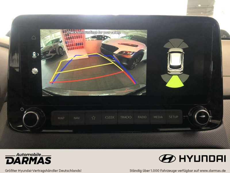 Der Hyundai Kona präsentiert sich als eine harmonische Verbindung aus stilvollem Design und innovativer Technologie, die sowohl urbanen als auch abenteuerlichen Fahrten gerecht wird. Mit seinen beeindruckenden 18-Zoll-Alufelgen strahlt der Kona sowohl Dynamik als auch Eleganz aus und unterstreicht seinen modernen Charakter. Die Voll-LED-Scheinwerfer des Hyundai Kona sorgen für eine optimale Ausleuchtung der Straße und bieten dabei eine bemerkenswerte Energieeffizienz. Diese Helligkeit gepaart mit einer klaren Lichtverteilung sorgt für Sicherheit und erhöht den Fahrkomfort, besonders bei nächtlichen Fahrten. Ein weiterer Vorteil des Hyundai Kona ist der Regensensor, der für bequemes und sicheres Fahren bei wechselnden Witterungsbedingungen sorgt. Dieser Sensor passt die Wischergeschwindigkeit automatisch an die Intensität des Regens an, was sowohl die Sichtverhältnisse optimiert als auch den Fahrer entlastet. Automobile Darmas GmbH, ein renommierter Hyundai-Vertragshändler, steht für herausragenden Kundenservice und Expertise im Automobilsektor. Kunden können sich auf eine professionelle Beratung und umfassende Betreuung verlassen, die den Kauf und die Pflege des Hyundai Kona zu einem angenehmen Erlebnis machen. Zusammenfassend verbindet der Hyundai Kona intelligentes Design mit fortschrittlicher Technik, wodurch er sowohl in städtischen als auch ländlichen Gegenden überzeugt. Dank der Unterstützung von Darmas können Kunden sicher sein, dass sie nicht nur ein Fahrzeug von hoher Qualität erhalten, sondern auch eine Partnerschaft mit einem engagierten Händler eingehen. Innenausstattung; Stoff, Schwarz, Klimaautomatik, Servolenkung, Elektr. Fensterheber, Zentralverriegelung, Elektr. Seitenspiegel, Schlüssellose Zentralverriegelung, Armlehne, Innenspiegel autom. abblendend; Räder & Fahrwerk; Reifendruckkontrolle, Leichtmetallfelgen, Sommerreifen; Multimedia; Radio DAB, Tuner/Radio, Soundsystem, Navigationssystem, Freisprecheinrichtung, Bluetooth, USB, Apple CarPlay, Touchscreen, Android Auto, Induktionsladen für Smartphones, Musikstreaming integriert; Vorne, Hinten, Kamera; Sitze; Sitzheizung, Lordosenstütze; Extras; Garantie, Scheckheftgepflegt, Nichtraucher-Fahrzeug; Sicherheit & Umwelt; Euro6d, 4 (Grün), ABS, ESP, Traktionskontrolle, Regensensor, Elektr. Wegfahrsperre, Start/Stopp-Automatik, Alarmanlage, HU neu, Notrufsystem, Isofix; Licht & Scheinwerfer; LED-Scheinwerfer, Kurvenlicht, Lichtsensor; Modelljahr 2023; Lieber Kunde, wenn Sie bei uns kaufen, entscheiden Sie sich für einen Kona den wir bei Hyundai für Sie bereits bestellt haben. Trotz unserer bei Hyundai bereits platzierten Bestellung, können wir zur Zeit noch Ausstattungsmerkmale verändern und das Fahrzeug individuell auf Ihre Wünsche anpassen. u.v.m., Int.-Nr. KMHK3812AMU801940, Änderungen, Zwischenverkauf und Irrtümer vorbehalten