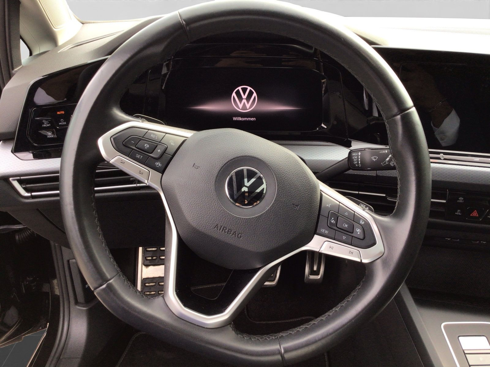**Ausstattungsvariante**; Active; **Garantie**; Anschlussgarantie 3 Jahre max. 100.000 km; **Getriebe / Antrieb**; Automatik; Frontantrieb; **Pakete**; Top Paket; **Airbags**; Fahrer-/Beifahrerairbag; Kopfairbag vorn und hinten; Seitenairbag vorn und hinten; **Sicherheit**; IQ. Light - LED-Matrix-Scheinwerfer; Abbiegelicht; Adaptives Kurvenlicht; Car2X; Kurvenlicht; LED Tagfahrlicht mit Leaving und Coming Home Funktion; Schlechtwetterlicht; Spurhalteassistent Lane Assist; Abbiegebremsfunktion; Antiblockiersystem ABS; Antischlupfregelung ASR; Ausweichunterstützung; Ausweichunterstützung; Auto Hold Funktion; Begrüssungslicht; Beifahrerairbag Deaktivierung; Diebstahlwarnanlage mit Innenraumüberwachung und Abschleppschutz; Dynamische Fernlichtregulierung Dynamic Light Assist; dynamisches Blinklicht; Einparkhilfe vorn und hinten mit Parklenkassistent; Elektrisches Stabilitätsprogramm ESP; Elektronische Bremskraftverteilung EBV; Fahrlichtautomatik; Geschwindigkeitsbegrenzer; ISOFIX Kindersitzbefestigung vorn und hinten; Lichtsensor; Motor-Schleppmoment-Regelung MSR; Müdigkeitserkennung; Notruf Service; Regensensor; Reifendruckkontrolle; Rückfahrkamera Rear View; Umfeldbeobachtungssystem Front Assist; Verabschiedungslicht; Verkehrszeichenerkennung; **Audio & Kommunikation**; Discover Media; Navigationssystem; App-Connect; Handy / Telefon Freisprecheinrichtung Comfort mit induktiver Ladefunktion; Sprachsteuerung; Streaming & Internet; 2 USB-C-Ladebuchsen an der Mittelkonsole hinten; 2 USB-C-Schnittstellen vorn; 7 Lautsprecher; Android Auto; App-Connect Wireless; Apple CarPlay; Digitaler Radioempfang DAB+; Online-Connectivity-Unit; We Connect Plus Vorbereitung; **Komfort**; Fahrer-/Beifahrersitz höhenverstellbar; Fahrprofilauswahl; Head-Up Display; Komfortsitze; Lendenwirbelstütze Fahrer-/Beifahrersitz; Sitzheizung; Air Care Climatronic 3-Zonen; Bedienungselemente in der 2.Sitzreihe für Climatronic; Climatronic mit Fondraumbedienung; Automatisch abblendender Innenspiegel; Automatische Distanzregelung ACC mit stop & go; Elektrische Luftzusatzheizung; Fensterheber elektrisch; Keyless Entry - Keyless Access Schlüsselloses Schließ und Startsystem; Lenkrad verstellbar; Mittelarmlehne hinten; Mittelarmlehne vorn verstellbar; Servotronic; Verglasung hinten abgedunkelt; Vorbereitung Mobiler Schlüssel - Fahrzeugzugang per Smartphone; Zentralverriegelung mit Fernbedienung; **Interieur**; Sitzbezüge in Stoff; Digital Cockpit Pro; Ambientebeleuchtung; LED Fußraumbeleuchtung Lichtfarbe wählbar; LED Leseleuchten vorn und hinten; Make-up Spiegel beleuchtet; Multifunktionslederlenkrad beheizbar mit Schaltwippen; Pedale in Edelstahl gebürstet; Rücksitzlehne geteilt/klappbar; **Exterieur**; Anhängerkupplung anklappbar mit elektrischer Entriegelung; Panorama Ausstell-/Schiebeglasdach elektrisch; Sportfahrwerk; Außenspiegel elektrisch verstell-/beheizbar mit Memory und Beifahrerspiegelabsenkung; Außenspiegel mit Umfeldbeleuchtung; Elektronische Differentialsperre XDS Dynamische Traktions Hilfe; Ganzjahresreifen; Heckspoiler; LED Rückleuchten; Leichtmetallfelgen 16 Zoll Galway; Rekuperation - Bremsenergierückgewinnung; Start-Stop System; Türgriffmulden beleuchtet; Umfeldbeleuchtung mit Logoprojektion; Leuchtweitenregulierung automatisch dynamisch; **Sonstiges**; 12 Volt Steckdose im Koffer-/Laderaum; Pannenkit; Scheibenwaschdüsen beheizbar; Dieselpartikelfilter DPF; Metallic-Lackierung