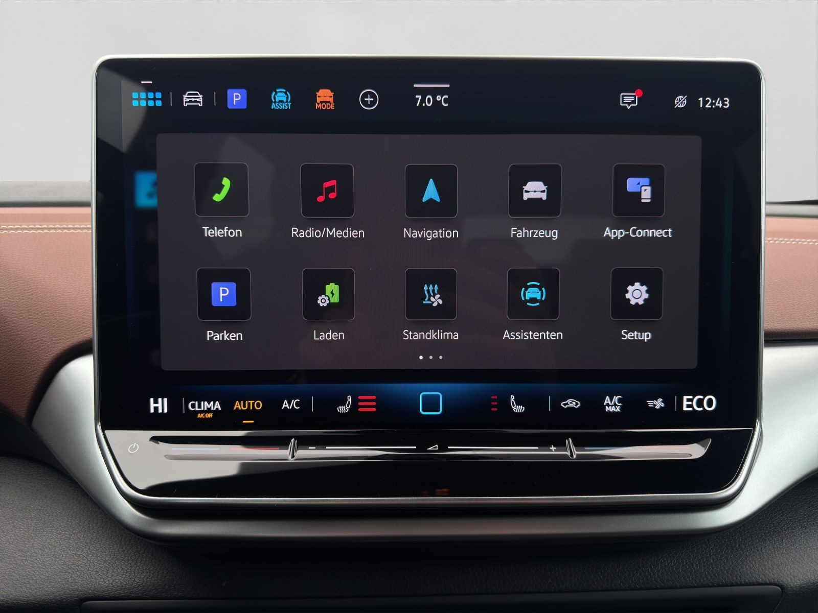 **Garantie**; Anschlussgarantie 3 Jahre max. 100.000 km; **Batterie**; Hochvolt-Batterie 55 kWh (brutto) / 52 kWh (netto); 11 kW Wechselstrom-Ladeleistung (AC); **Getriebe / Antrieb**; Heckantrieb; **Pakete**; Design Paket; Infotainment Paket; Interieur Paket; Komfort Paket; **Airbags**; Center-Airbag; Fahrer-/Beifahrerairbag; Kopfairbag vorn und hinten; Seitenairbag; **Sicherheit**; IQ. Light - LED-Matrix-Scheinwerfer; Ausparkassistent - Rear Traffic Alert; Car2X; e-Sound; Schlechtwetterlicht; Spurhalteassistent Lane Assist; Spurwechselassistent Side Assist; Abbiegebremsfunktion; Ablenkungserkennung; Ausstiegswarnung; Ausweichunterstützung; Begrüssungslicht; Beifahrerairbag Deaktivierung; Dynamische Fernlichtregulierung Dynamic Light Assist; dynamisches Blinklicht; Einparkhilfe vorn und hinten; Fahrlichtautomatik; Geschwindigkeitsbegrenzer mit vorausschauender Regelung; i-Size Kindersitzbefestigung vorn und hinten; ISOFIX Kindersitzbefestigung vorn und hinten; Müdigkeitserkennung; Notruf Service; Regensensor; Reifendruckkontrolle; Umfeldbeobachtungssystem Front Assist; Verkehrszeichenerkennung; Wegfahrsperre; Vorbereitung Alcohol Interlock; **Audio & Kommunikation**; Discover Pro mit TFT-Farbtouchscreen; Navigationssystem; Ready 2 Discover Max; Rear Seat Remote; Sprachsteuerung; Streaming & Internet; Telefonschnittstelle mit induktiver Ladefunktion; 2 USB-C-Ladebuchsen an der Mittelkonsole hinten; 2 USB-C-Schnittstellen vorn; 7 Lautsprecher; Android Auto; App-Connect Wireless; Apple CarPlay; Digitaler Radioempfang DAB+; VW Connect Plus Vorbereitung; VW Connect Vorbereitung; **Komfort**; Fahrer-/Beifahrersitz höhenverstellbar; Fahrprofilauswahl; Sitzheizung; Standheizung/-lüftung programmierbar; Air Care Climatronic 2-Zonen; Standklimatisierung; Armlehnen für Fahrer-/Beifahrersitz; Automatisch abblendender Innenspiegel; Automatische Distanzregelung ACC; Elektrische Luftzusatzheizung; Fensterheber elektrisch; Keyless Start; Lenkrad verstellbar; Mittelarmlehne hinten; Servotronic; Verglasung hinten abgedunkelt; Zentralverriegelung mit Fernbedienung; **Interieur**; Sitzbezüge in Alcantara / Stoff; Digitales Cockpit; Durchladesystem; Lenkradheizung; Make-up Spiegel beleuchtet; Multifunktionslenkrad; Pedale in Edelstahl; Rücksitzlehne geteilt/klappbar; **Exterieur**; 3D LED Rückleuchten; Außenspiegel elektrisch verstell-/anklappbar beheizt mit Beifahrerspiegelabsenkung; Außenspiegel mit Umfeldbeleuchtung; beheizbare Frontscheibe; Ganzjahresreifen; Leichtmetallfelgen 19 Zoll Hamar; Leiste zwischen den Scheinwerfern beleuchtet; Umfeldbeleuchtung mit Logoprojektion; **Sonstiges**; CCS Ladedose; Ladekabel für Haushalts-Steckdose; Wärmepumpe zur Reichweitenoptimierung; 12 Volt Steckdose im Koffer-/Laderaum; Metallic-Lackierung