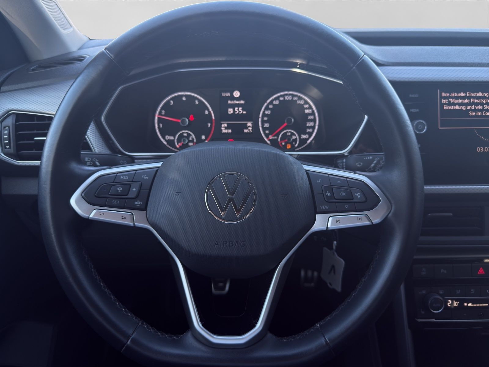 Highlights: Hersteller-Anschlussgarantie 3 Jahre, max. 100.000 km Ausstattungsvariante Active Garantie Anschlussgarantie 3 Jahre max. 100.000 km Getriebe / Antrieb Frontantrieb - Schaltgetriebe Airbags Fahrer-/Beifahrerairbag - Kopfairbag vorn und hinten - Seitenairbag Sicherheit Spurhalteassistent Lane Assist - Tagfahrlicht mit Leaving und Coming Home Funktion - Antiblockiersystem ABS - Antischlupfregelung ASR - Beifahrerairbag Deaktivierung - Berganfahrassistent - Einparkhilfe vorn und hinten - Elektrisches Stabilitätsprogramm ESP - Elektronische Bremskraftverteilung EBV - Fahrlichtautomatik - Fernlichtassistent Light Assist - Fußgängererkennung - Gegenlenkunterstützung - Vehicle Stability Management VSM - Geschwindigkeitsbegrenzer - Gespannstabilisierung - i-Size Kindersitzbefestigung vorn und hinten - ISOFIX Kindersitzbefestigung vorn und hinten - Lichtsensor - Motor-Schleppmoment-Regelung MSR - Notruf Service - Radfahrererkennung - Regensensor - Reifendruckkontrolle - Umfeldbeobachtungssystem Front Assist - Verkehrszeichenerkennung - Wegfahrsperre Audio & Kommunikation Discover Media - Navigationssystem - App-Connect - Handy / Telefon Freisprecheinrichtung Bluetooth Comfort - Streaming & Internet - 2 USB-C-Ladebuchsen an der Mittelkonsole hinten - 2 USB-C-Schnittstellen vorn - 6 Lautsprecher - Android Auto - App-Connect Wireless - Apple CarPlay - Digitaler Radioempfang DAB+ - Multifunktionsanzeige Plus - Online-Connectivity-Unit - We Connect Plus Vorbereitung - zwei USB-Anschlüsse mit Ladefunktion im Fond Komfort Fahrer-/Beifahrersitz höhenverstellbar - Sitzheizung - Air Care Climatronic 2-Zonen - Automatisch abblendender Innenspiegel - Automatische Distanzregelung ACC - Fensterheber elektrisch - Lenkrad verstellbar - Mittelarmlehne vorn verstellbar - Schublade unter dem rechten Vordersitz - Servolenkung - Verglasung hinten abgedunkelt - Zentralverriegelung mit Fernbedienung Interieur Sitzbezüge in Stoff - Ambientebeleuchtung - Beifahrersitzlehne komplett umklappbar - Gepäckraumabdeckung - Gepäckraumbeleuchtung - Gepäckraumboden in 2 Höhen einstellbar - Handbremshebelgriff in Leder - Make-up Spiegel - Multifunktionslederlenkrad - Pedale in Edelstahl gebürstet - Rücksitzbank verschiebbar - Rücksitzlehne geteilt/klappbar - Schaltknauf in Leder - Ablagetaschen an den Rückseiten der Vordersitze Exterieur Außenspiegel elektrisch verstell-/anklappbar beheizt mit Beifahrerspiegelabsenkung - Dachreling schwarz - Elektronische Differentialsperre EDS - Ganzjahresreifen - Leichtmetallfelgen 16 Zoll Galway - Start-Stop System - Leuchtweitenregulierung Sonstiges 12 Volt Steckdose vorne - 4 Türen - Pannenkit - Scheibenwaschdüsen beheizbar - Waschwasser-Standanzeige - Metallic-Lackierung - Anschlussgarantie endet 05.2026 max. 100.000 km