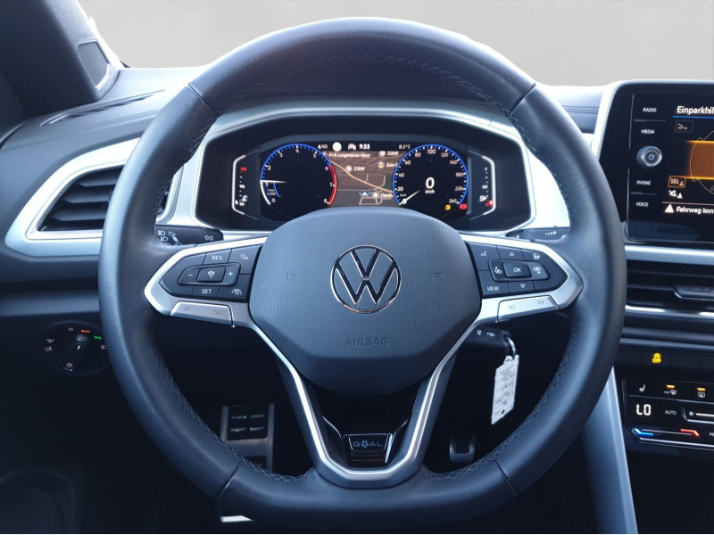 **Ausstattungsvariante**; Goal; **Garantie**; Anschlussgarantie 3 Jahre max. 100.000 km; **Getriebe / Antrieb**; Frontantrieb; Schaltgetriebe; **Pakete**; Chrom Paket; Infotainment Paket Discover Media; **Airbags**; Fahrer-/Beifahrerairbag; Kopfairbag; Seitenairbag; **Sicherheit**; LED Plus Scheinwerfer; Abbiegelicht; LED Tagfahrlicht mit Leaving und Coming Home Funktion; Schlechtwetterlicht; Spurhalteassistent Lane Assist; Spurwechselassistent Side Assist; Ablenkungserkennung; Antiblockiersystem ABS; Antischlupfregelung ASR; Auto Hold Funktion; Beifahrerairbag Deaktivierung; Einparkhilfe vorn und hinten mit Parklenkassistent; Elektrisches Stabilitätsprogramm ESP; Fahrlichtautomatik; Fernlichtassistent Light Assist; Fußgängererkennung; Gegenlenkunterstützung - Vehicle Stability Management VSM; Geschwindigkeitsbegrenzer; Gespannstabilisierung; ISOFIX Kindersitzbefestigung; Lichtsensor; Motor-Schleppmoment-Regelung MSR; Müdigkeitserkennung; Notruf Service; Proaktives Insassenschutzsystem; Regensensor; Reifendruckkontrolle; Rückfahrkamera Rear View; Umfeldbeobachtungssystem Front Assist; Verkehrszeichenerkennung; Wegfahrsperre; **Audio & Kommunikation**; Discover Media; Navigationssystem; Telefonschnittstelle mit induktiver Ladefunktion; 2 USB-C-Ladebuchsen an der Mittelkonsole hinten; 2 USB-C-Schnittstellen vorn; 6 Lautsprecher; Android Auto; App-Connect Wireless; Apple CarPlay; Digitaler Radioempfang DAB+; Online-Connectivity-Unit; VW Connect Plus Vorbereitung; **Komfort**; Fahrer-/Beifahrersitz höhenverstellbar; Komfortsitze; Lendenwirbelstütze Fahrer-/Beifahrersitz elektrisch; Sitzheizung; Standheizung/-lüftung programmierbar mit Fernbedienung; Air Care Climatronic 2-Zonen; Automatische Distanzregelung ACC; Easy Entry; Fensterheber elektrisch; Lenkrad verstellbar; Mittelarmlehne vorn; Servotronic; Windschott; Zentralverriegelung mit Fernbedienung; Ablagefach vorn; **Interieur**; Sitzbezüge in Stoff; Digital Cockpit Pro; Ambientebeleuchtung; Make-up Spiegel beleuchtet; Multifunktionslederlenkrad beheizbar; Pedale in Edelstahl gebürstet; Rücksitzlehne geteilt/klappbar; Travel Assist; **Exterieur**; Anhängerkupplung abnehmbar und abschließbar; Außenspiegel elektrisch verstell-/anklappbar beheizt mit Memory; Außenspiegelgehäuse in Schwarz hochglänzend; Außenspiegel mit Umfeldbeleuchtung; Elektronische Differentialsperre EDS; Ganzjahresreifen; LED Rückleuchten; Leichtmetallfelgen 17 Zoll Zürich; Rekuperation - Bremsenergierückgewinnung; Start-Stop System; Umfeldbeleuchtung mit Logoprojektion; Verdeck elektrisch; Leuchtweitenregulierung automatisch dynamisch; **Sonstiges**; 12 Volt Steckdose vorne; Pannenkit; Waschwasser-Standanzeige; Metallic-Lackierung; * Chrom-Applikationen an Lichtdreh- Spiegeleinstell-und Fensterheberschaltern sowie Ausströmer mit Chromrahmen; * Stoßfänger in Wagenfarbe mit Chromleiste im Kühlergrill; * Türunterteile schwarz mit Chromleiste