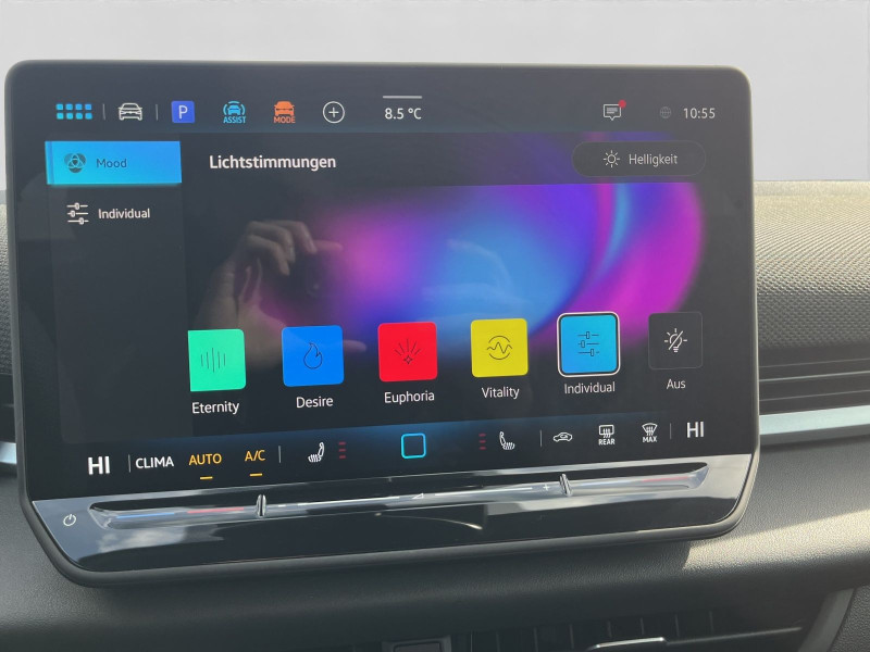 - Volkswagen Logo vorn und hinten, Leiste zwischen den Scheinwerfern/Rückleuchten beleuchtet