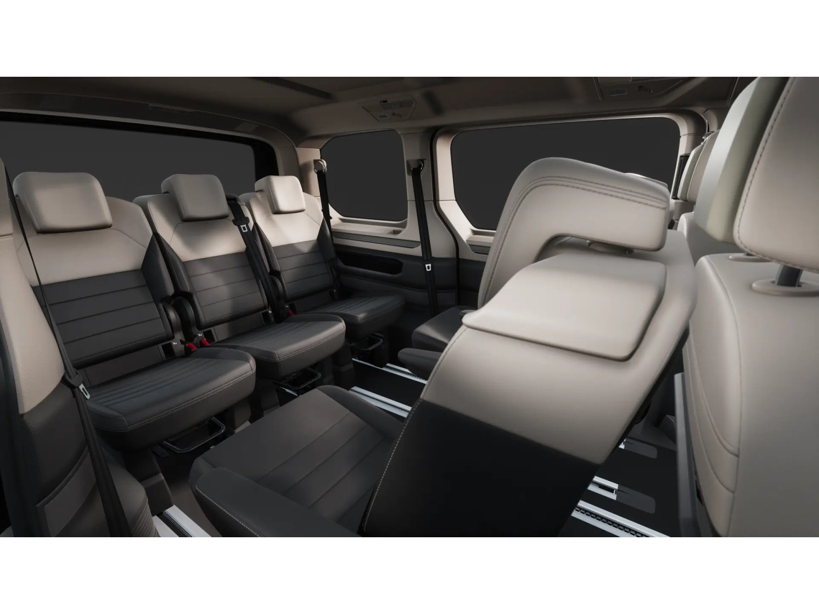 - Lange Bodenschienen bis Fahrer- und Beifahrersitz als Vorbereitung für den Multifunktionstisch