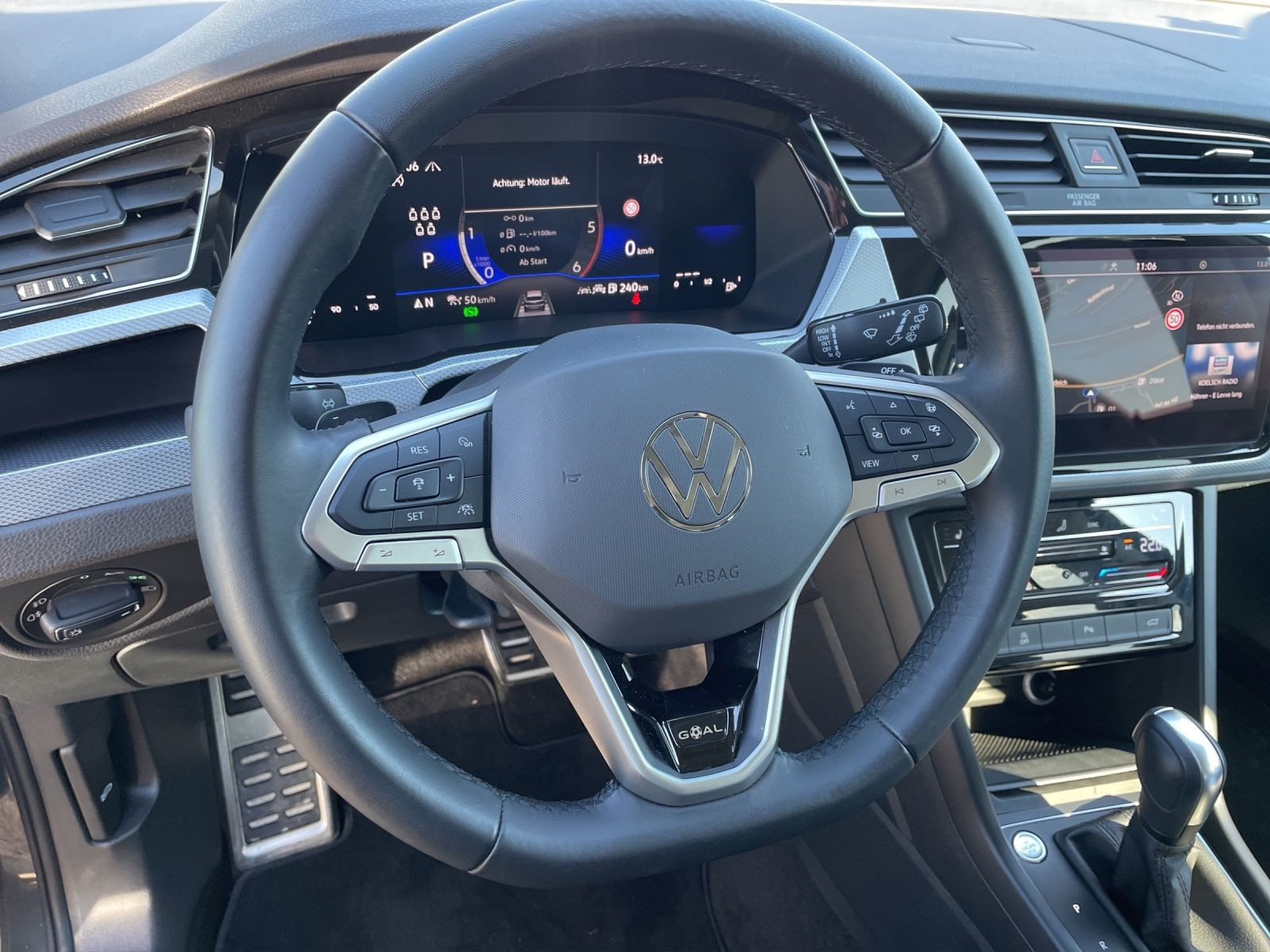 **Ausstattungsvariante**; Comfortline; Goal; **Garantie**; Anschlussgarantie 3 Jahre max. 100.000 km; **Getriebe / Antrieb**; Automatik; Frontantrieb; **Pakete**; Easy Open & Close Paket; Family Paket; Infotainment Paket Discover Pro; **Airbags**; Fahrer-/Beifahrerairbag; Knieairbag; Kopfairbag vorn und hinten; Seitenairbag vorn und hinten; **Sicherheit**; Abbiegelicht; Ausparkassistent - Rear Traffic Alert; Spurhalteassistent Lane Assist; Spurwechselassistent Side Assist; Tagfahrlicht mit Leaving und Coming Home Funktion; 1 Kindersitz mit Seitenhalt und Seitenkopfstütze herausklappbar rechts in der 2.Sitzreihe; Ablenkungserkennung; Antiblockiersystem ABS; Antischlupfregelung ASR; Auto Hold Funktion; Beifahrerairbag Deaktivierung; Diebstahlwarnanlage mit Innenraumüberwachung und Abschleppschutz; Einparkhilfe vorn und hinten; Elektrisches Stabilitätsprogramm ESP; Emergency Assist; Fahrlichtautomatik; Fernlichtassistent Light Assist; Fußgängererkennung; Gegenlenkunterstützung - Vehicle Stability Management VSM; Geschwindigkeitsbegrenzer; Gespannstabilisierung; ISOFIX Kindersitzbefestigung; Kindersicherung elektrisch vom Fahrersitz aus bedienbar; LED Kennzeichenbeleuchtung; Lichtsensor; Motor-Schleppmoment-Regelung MSR; Müdigkeitserkennung; Nebelscheinwerfer; Notruf Service; Proaktives Insassenschutzsystem; Radfahrererkennung; Regensensor; Reifendruckkontrolle; Rückfahrkamera Rear View; Umfeldbeobachtungssystem Front Assist; Verkehrszeichenerkennung; **Audio & Kommunikation**; Discover Pro mit TFT-Farbtouchscreen; Navigationssystem; Sprachsteuerung; Telefonschnittstelle mit induktiver Ladefunktion; 2 USB-C-Ladebuchsen an der Mittelkonsole hinten; 2 USB-C-Schnittstellen vorn; 8 Lautsprecher; Android Auto; App-Connect Wireless; Apple CarPlay; Digitaler Radioempfang DAB+; Online-Connectivity-Unit; VW Connect Plus Vorbereitung; **Komfort**; Fahrer-/Beifahrersitz höhenverstellbar; Fahrprofilauswahl; Komfortsitze; Lendenwirbelstütze Fahrer-/Beifahrersitz; Sitzheizung; Air Care Climatronic 3-Zonen; Bedienungselemente in der 2.Sitzreihe für Climatronic; Gepäckraumklappe elektrisch öffnend und schließend mit sensorsteuerung; Ablagefächer in der Dachkonsole; Allergen-Filter; Automatisch abblendender Innenspiegel; Automatische Distanzregelung ACC; Easy Fold; Elektrische Luftzusatzheizung; Fensterheber elektrisch; Fernentriegelung Gepäckraumklappe; Gepäckraum-Wendematte faltbar und herausnehmbar; Keyless Entry - Keyless Access Schlüsselloses Schließ und Startsystem; Klapptisch an Vordersitzlehnen; Lenkrad verstellbar; Mittelarmlehne vorn verstellbar mit Ablagebox; Schubladen unter den Vordersitzen; Servotronic; Sonnenschutzrollo; Verglasung hinten abgedunkelt; Zentralverriegelung mit Fernbedienung; Ablagefach auf Armaturentafel; Ablagefach vorn; **Interieur**; Sitzbezüge in Stoff; Digitales Cockpit; 3 Einzelsitze 2.Sitzreihe 2 Einzelsitze 3.Sitzreihe; 3.Sitzreihe 2 Einzelsitze im Gepäckraumboden versenkbar; 7 Sitzer; Ambientebeleuchtung; Beifahrersitzlehne komplett umklappbar; Dekoreinlagen Piano Black; Durchladesystem; Gepäckraumabdeckung auszieh-/herausnehmbar; LED Fußraumbeleuchtung; LED Leseleuchten vorn und hinten; Make-up Spiegel beleuchtet; Multifunktionslederlenkrad beheizbar mit Schaltwippen; Travel Assist; Schaltknauf in Leder; **Exterieur**; Außenspiegel elektrisch verstell-/anklappbar beheizt automatisch abblendend; Außenspiegel mit Umfeldbeleuchtung; beheizbare Frontscheibe; Beifahrerspiegelabsenkung; Dachreling silber eloxiert; Elektronische Differentialsperre EDS; Leichtmetallfelgen 16 Zoll Zürich; Rekuperation - Bremsenergierückgewinnung; Scheinwerferreinigungsanlage SRA; Start-Stop System; Leuchtweitenregulierung; **Sonstiges**; 12 Volt Steckdose im Koffer-/Laderaum; 12 Volt Steckdose vorne; ECO-Funktion; Pannenkit; Scheibenwaschdüsen beheizbar; Waschwasser-Standanzeige; Dieselpartikelfilter DPF; Metallic-Lackierung