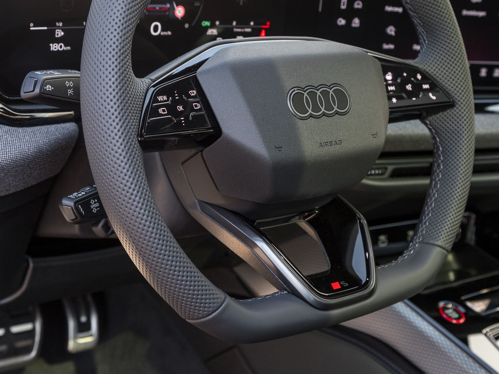 Multifunktionssportlederlenkrad oben und unten abgeflacht mit Schaltwippen