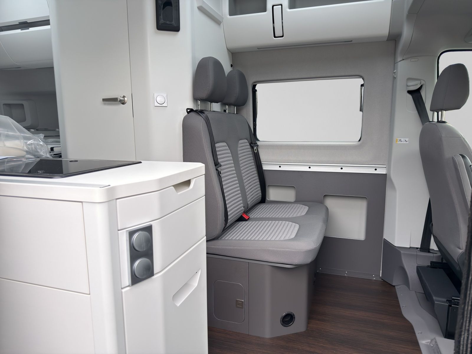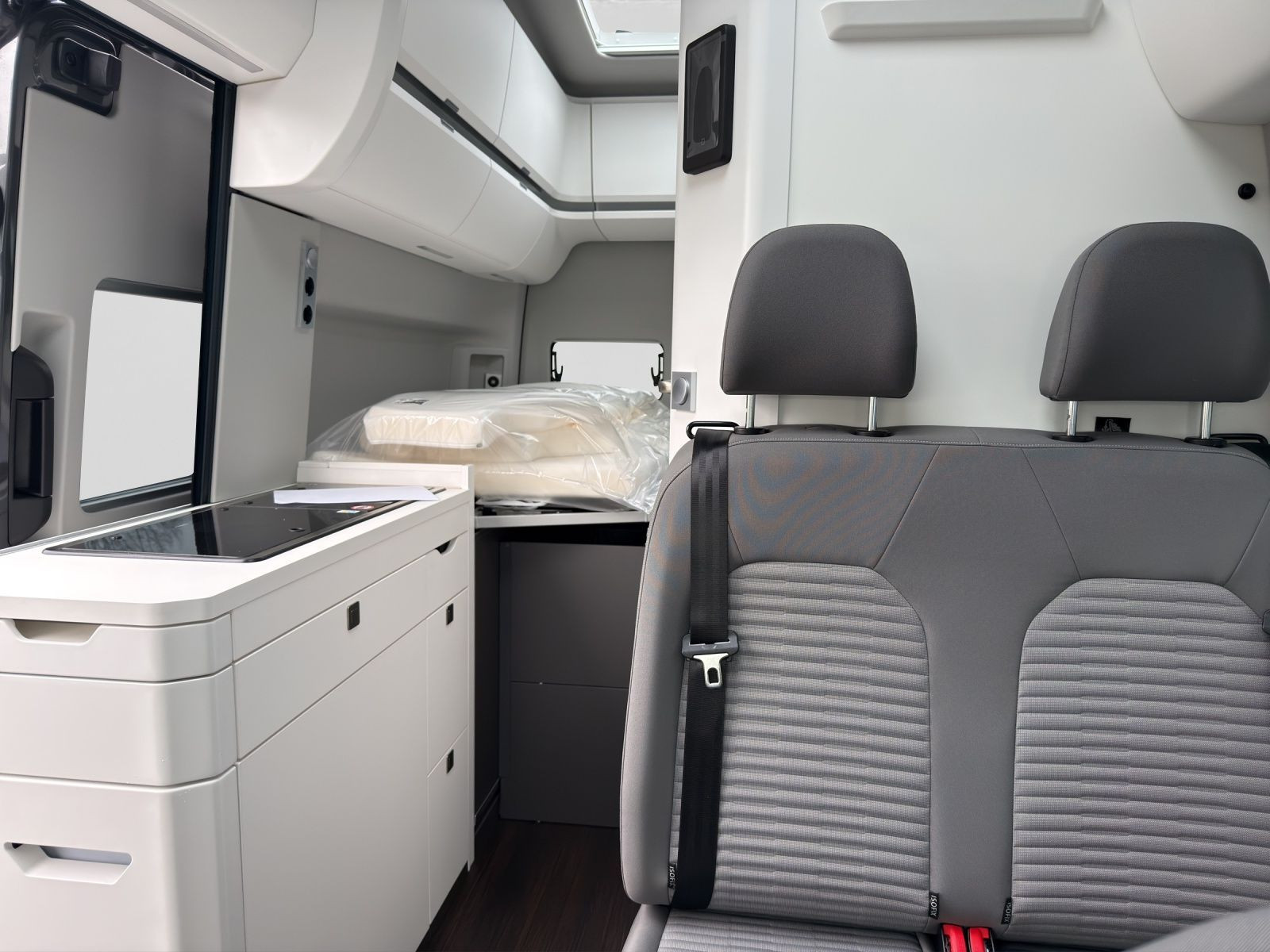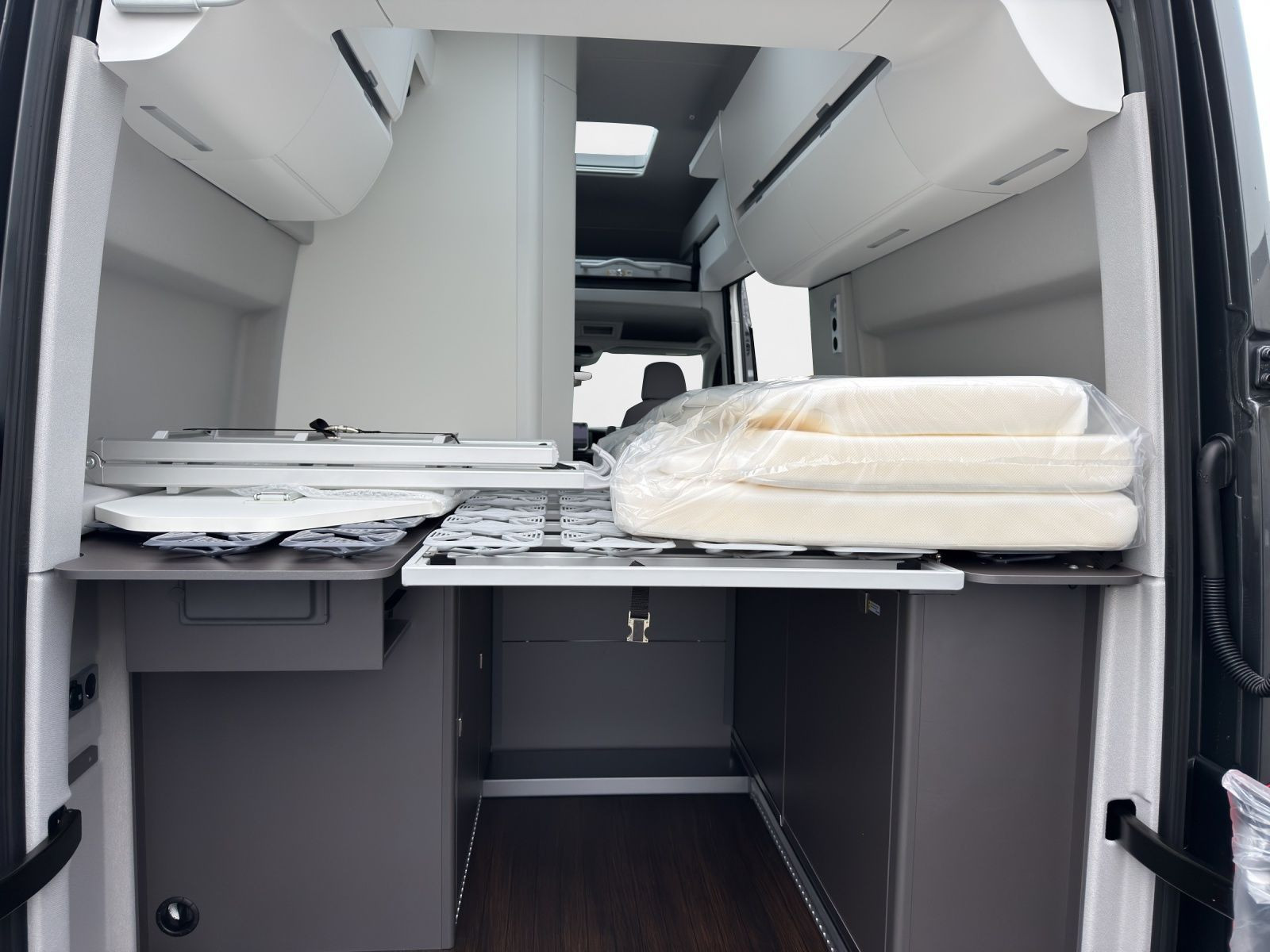 Hochbett über Dinette inklusive Aufstiegsleiter, Beleuchtung und Panoramadachfenster
