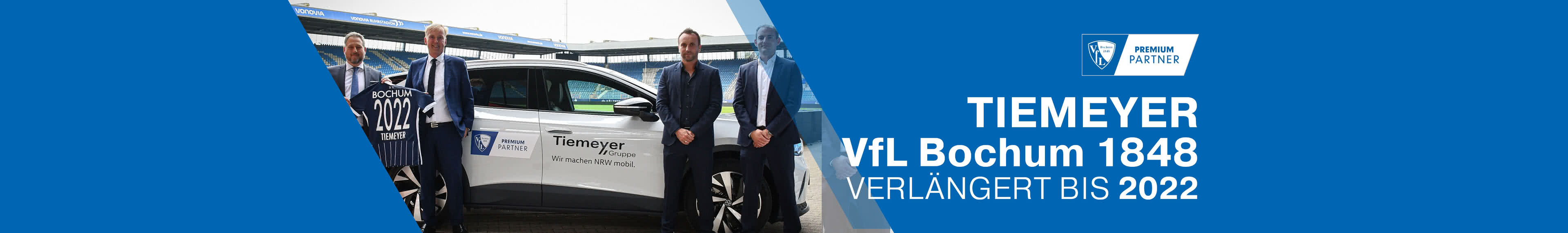 Nach langjähriger Zusammenarbeit ist die Tiemeyer Gruppe für die Saison 2021/2022 weiterhin Premium Partner des VfL Bochum 1848. Die Tiemeyer Gruppe ist zudem nach wie vor offizieller Automobilpartner des Bundesligisten und stellt diesem die Fahrzeugflotte zur Verfügung. Die Fahrzeuge kommen in den unterschiedlichsten Bereichen des Vereins zum Einsatz – in der Geschäftsstelle, im Merchandising, Greenkeeping bis hin zum Fahrdienst der VfL-Nachwuchsspieler.